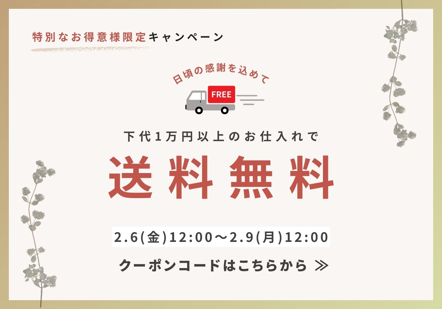 【10%OFF】+【送料無料】のWキャンペーン実施中!