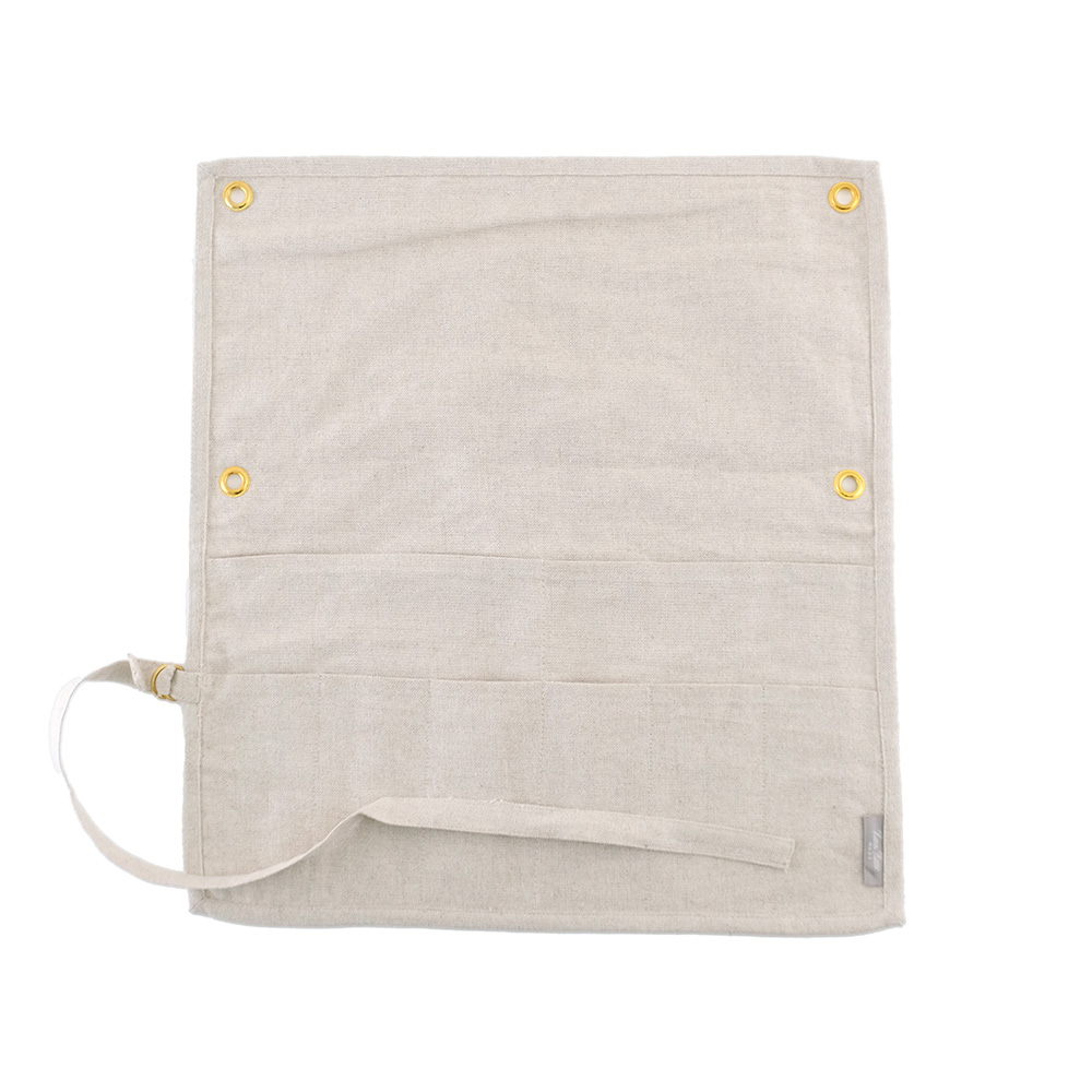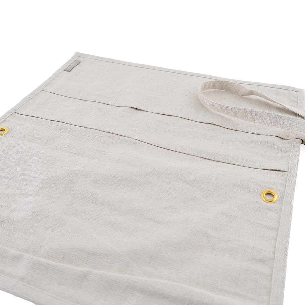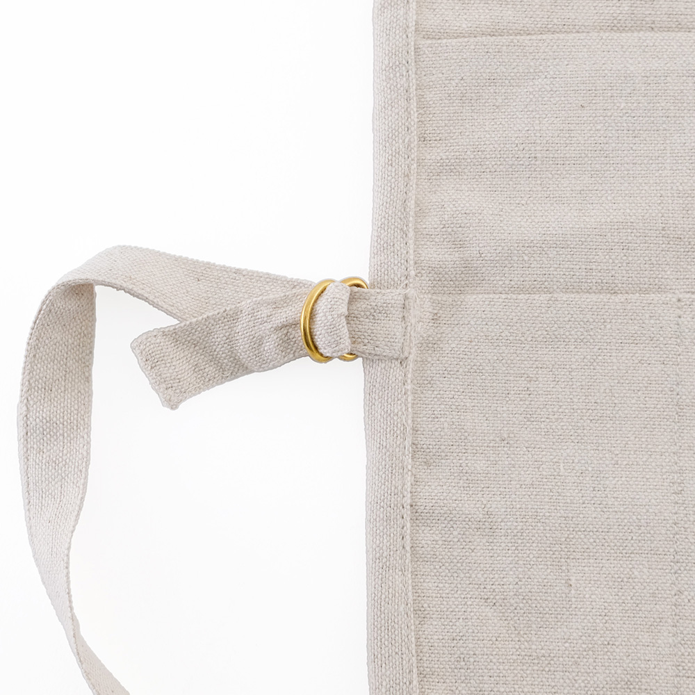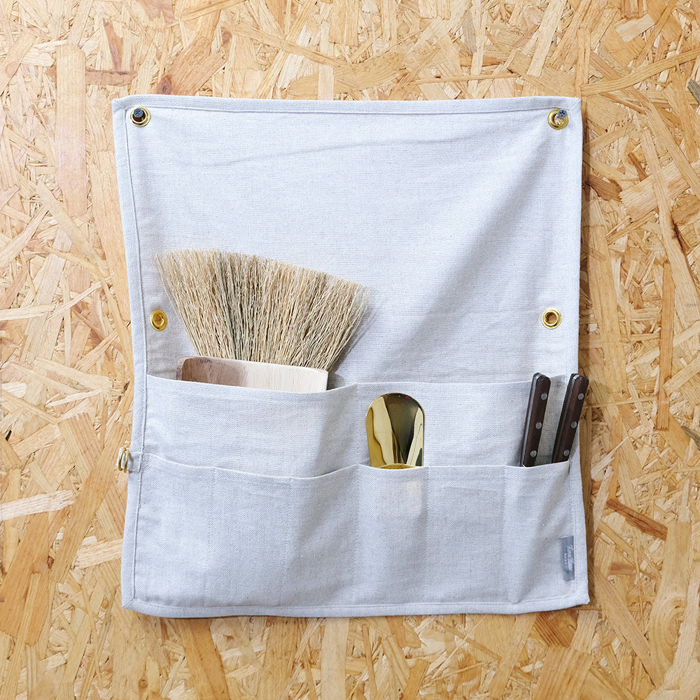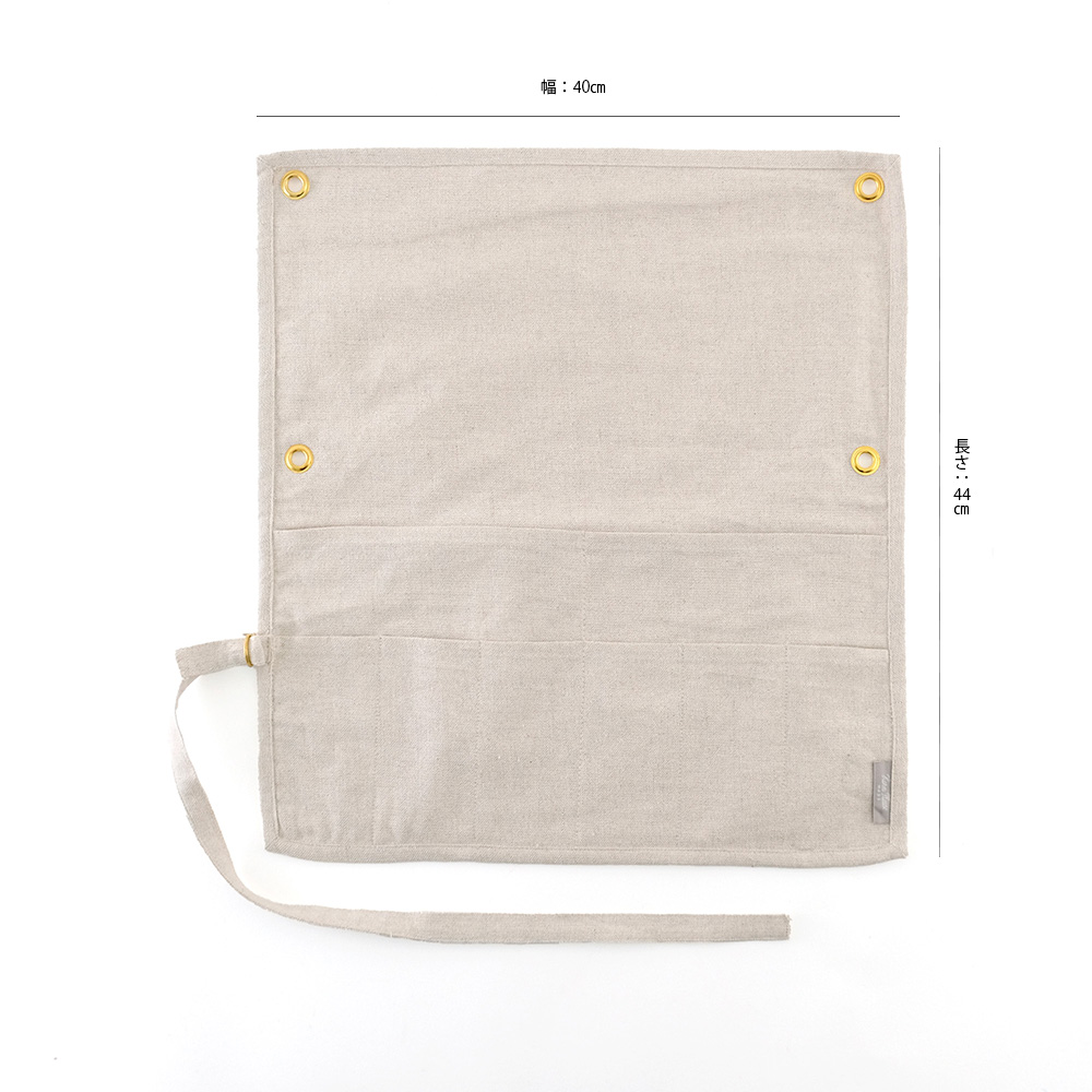 ピクニックやイベント時にスプーンやフォークを入れて巻いて持ち運んだり、ベルトを外せば、お家の中でウォールポケットとしても使えるデザインです。