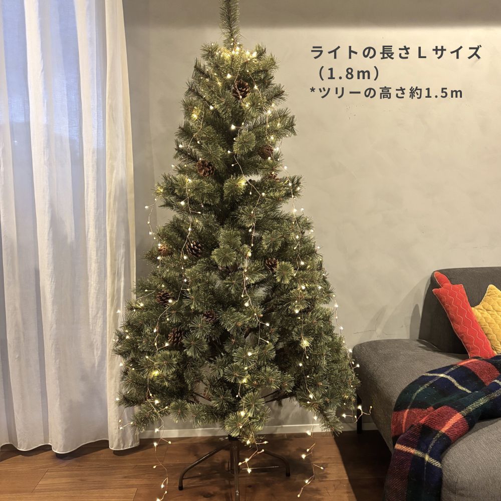 | サイズ | L:長さ1.8m(LED:300球) ワイヤー:長さ2.5m S:長さ1.5m(LED:240球) ワイヤー:長さ2.5m |