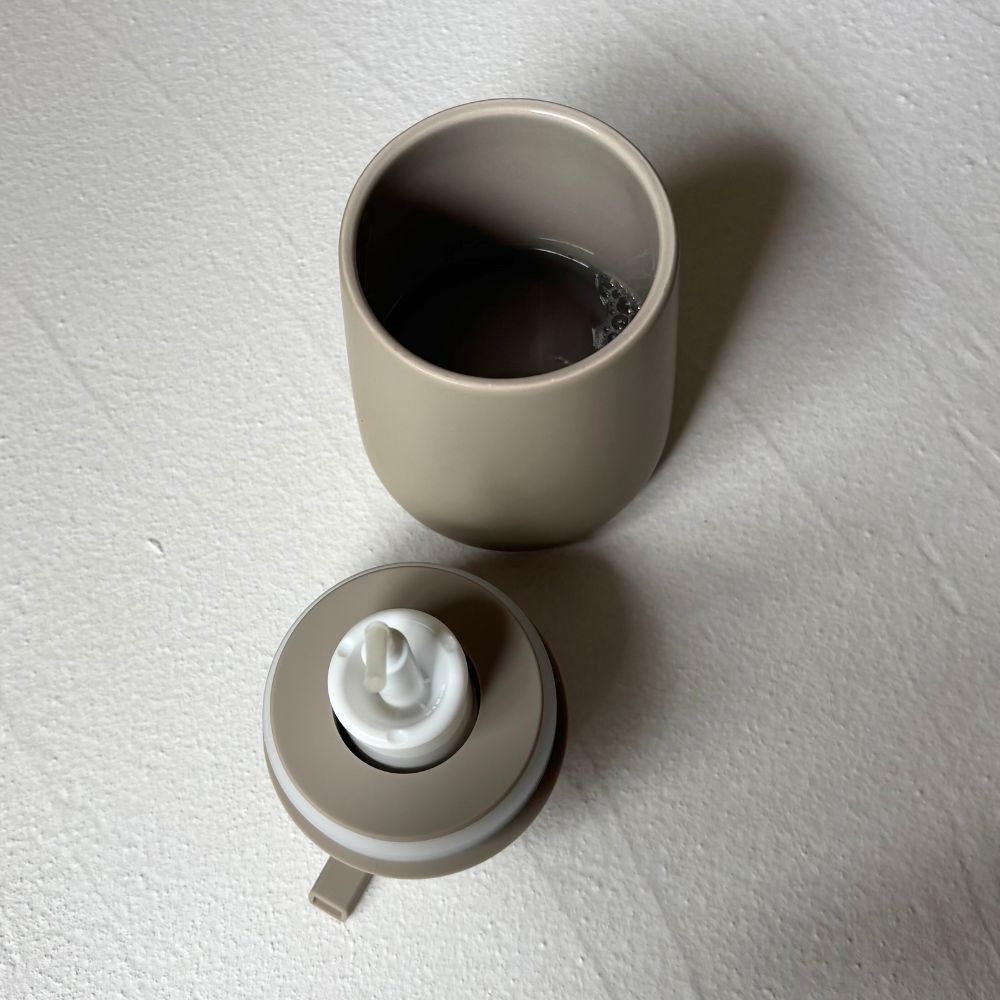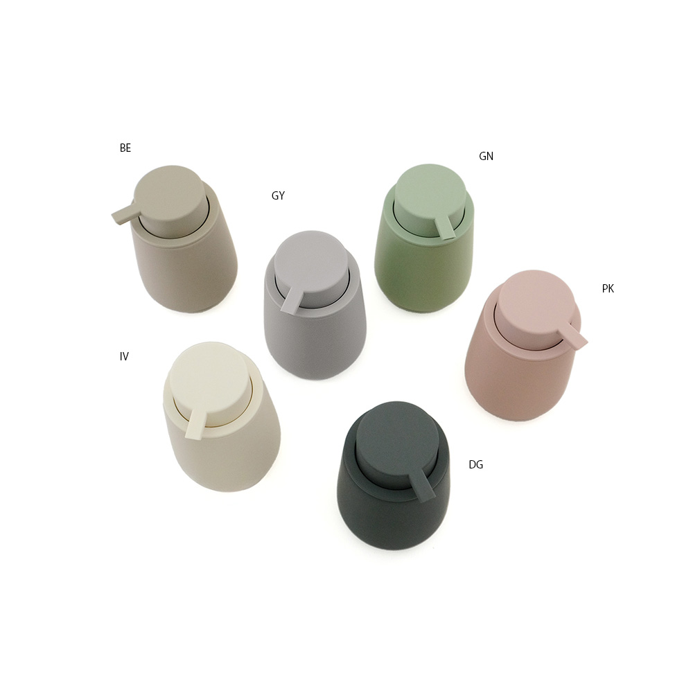 陶器にラバーコーティングが施され、マットな質感が上品なディスペンサー。インテリアに馴染みやすいベーシックカラー展開です。 キャップの面積が広く、詰め替えがしやすくなっており、プッシュしやすいのでお子様も使いやすいデザインです。 《定番色/BE・GY・IV》 ■シリーズ商品はこちら 陶器にラバーコーティングを施すことでクッション性が向上し、表面を保護してくれます。これによって衝撃や振動に強くなり、割れや欠けを防ぐことができます。また、手に持った質感や心地よさ、マットな見た目が特徴です。 >>生活雑貨・日用品