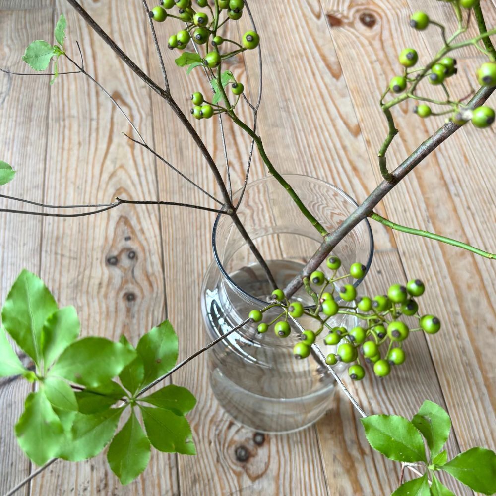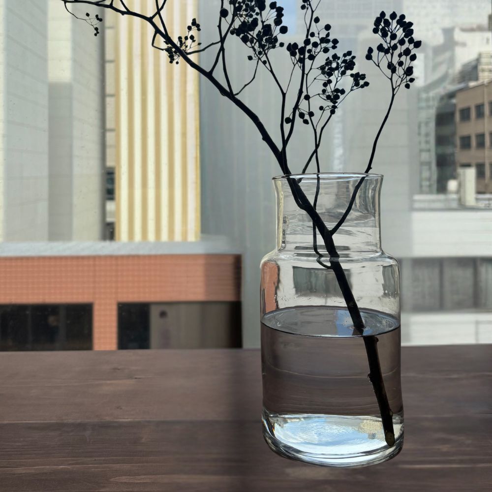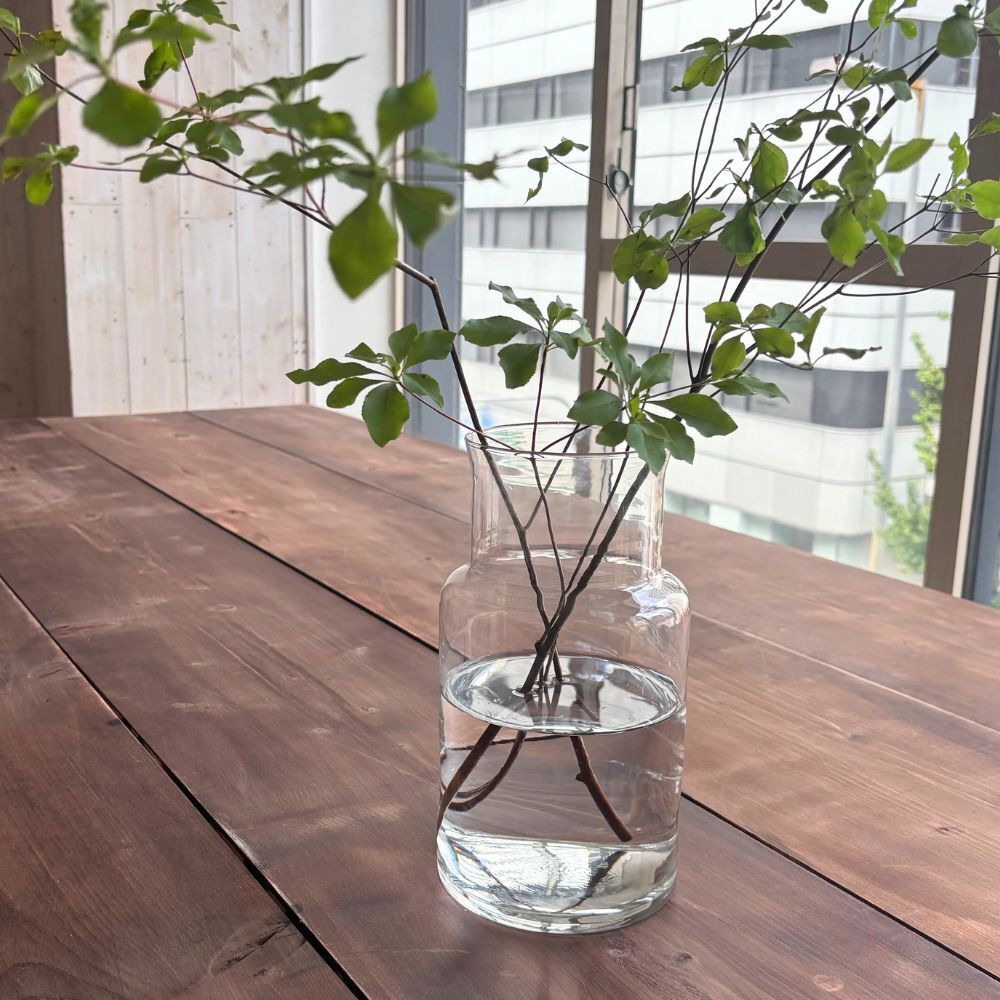 再生ガラスで作られたリューズガラスシリーズは、素朴な風合いが特徴です。 "ネック"はシンプルながらも様々なシーンで活躍してくれる、shesayのロングセラーアイテム。 すこし大きめなので安定感があり、季節の枝物をサッと活けるだけで簡単に飾ることができ、お花初心者の方でも活けやすい形になっています。 大ぶりな枝物から季節のお花まできれいに映え、どんなお部屋にも合うデザイン。 春夏には桜やミモザ、ドウダンツツジ、秋冬にはスモークツリーやモミの木など季節を問わずお使いいただけます。 またリューズガラスは比較的軽量で、開口部も広いのでお手入れもしやすいのも嬉しいポイントです。 >>フラワーベースに合わせて使えるアカシアの蓋はこちら リューズガラスとは、再利用されたガラスのことをいいます。一般的には「リサイクルガラス」や「再生ガラス」とも呼ばれ、一度は捨てられたり不要になったガラスをリサイクルして使っています。そのためリューズガラスは、環境にやさしいサスティナブル( Sustainable =持続可能)な社会への取り組みとしても注目されています。リューズガラス製品は、ひとつひとつが職人たちの手によるハンドメイド。炉(ろ)で溶かしたガラスを竿(さお)ですくい取り、型の中で息を吹き込みながら作る「型吹き成形」という技法で作られていますので、たとえ同じ型のシリーズであっても、全く同じ仕上がりになるということはありません。ハンドメイドならではの、ガラス表面に生まれるわずかな“しわ”や小さな気泡、繊細な表情の違いなどをお楽しみいただけると思います。さらにリューズガラスの風合いは、無機質な印象になりがちなガラス製品に独特のあたたかみや素朴さをもたらしてくれます。吹きガラスならではの、やや薄くて軽い作りも魅力のひとつです。ガラスの流れや小さな気泡、口の部分に盛り上がった箇所などがあったりしますが、これは吹き竿からガラスをカットした後、熱処理した時にガラスが流れて出来るもので、これもまた吹きガラスの特徴です。 *リューズガラスは再生ガラスを使用した当社商標登録商品です。 shesayで人気のリューズガラスシリーズです。その中でも一番人気の"ネック"です。春夏は植物を飾ったり秋冬にはライトを入れたりと様々なディスプレイができるので、お店に四季を取り入れやすいです。SNSでの露出も高く、年間通して販売実績のあるアイテムです。shesayのアイテムはまだ取扱いがないお客さまも、是非ご検討ください! >>インテリアグリーン・ガーデン