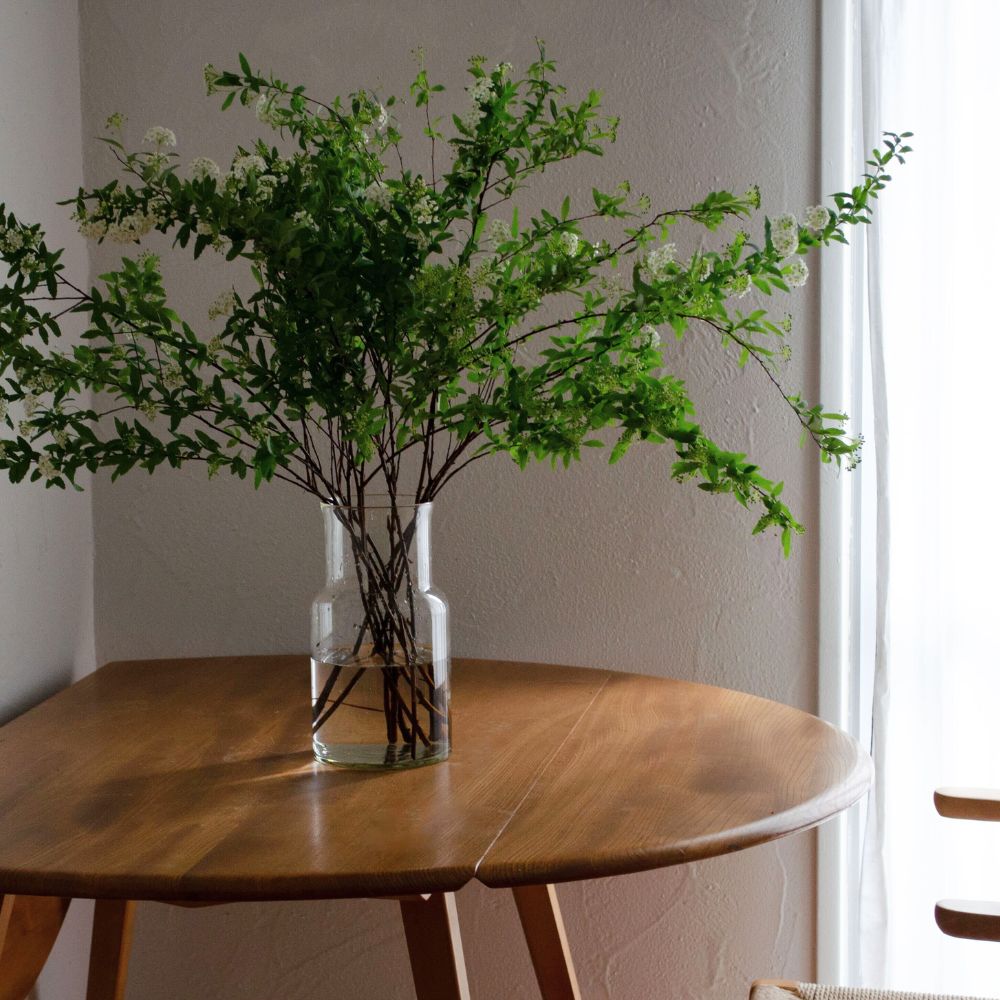 再生ガラスで作られたリューズガラスシリーズは、素朴な風合いが特徴です。"ネック"はシンプルながらも様々なシーンで活躍してくれる、shesayのロングセラーアイテム。すこし大きめなので安定感があり、季節の枝物をサッと活けるだけで簡単に飾ることができ、お花初心者の方でも活けやすい形になっています。大ぶりな枝物から季節のお花まできれいに映え、どんなお部屋にも合うデザイン。春夏には桜やミモザ、ドウダンツツジ、秋冬にはスモークツリーやモミの木など季節を問わずお使いいただけます。 またリューズガラスは比較的軽量で、開口部も広いのでお手入れもしやすいのも嬉しいポイントです。 >>フラワーベースに合わせて使えるアカシアの蓋はこちら リューズガラスとは、再利用されたガラスのことをいいます。一般的には「リサイクルガラス」や「再生ガラス」とも呼ばれ、一度は捨てられたり不要になったガラスをリサイクルして使っています。そのためリューズガラスは、環境にやさしいサスティナブル( Sustainable =持続可能)な社会への取り組みとしても注目されています。リューズガラス製品は、ひとつひとつが職人たちの手によるハンドメイド。炉(ろ)で溶かしたガラスを竿(さお)ですくい取り、型の中で息を吹き込みながら作る「型吹き成形」という技法で作られていますので、たとえ同じ型のシリーズであっても、全く同じ仕上がりになるということはありません。ハンドメイドならではの、ガラス表面に生まれるわずかな“しわ”や小さな気泡、繊細な表情の違いなどをお楽しみいただけると思います。さらにリューズガラスの風合いは、無機質な印象になりがちなガラス製品に独特のあたたかみや素朴さをもたらしてくれます。吹きガラスならではの、やや薄くて軽い作りも魅力のひとつです。ガラスの流れや小さな気泡、口の部分に盛り上がった箇所などがあったりしますが、これは吹き竿からガラスをカットした後、熱処理した時にガラスが流れて出来るもので、これもまた吹きガラスの特徴です。 *リューズガラスは再生ガラスを使用した当社商標登録商品です。 shesayで人気のリューズガラスシリーズです。その中でも一番人気の"ネック"です。春夏は植物を飾ったり秋冬にはライトを入れたりと様々なディスプレイができるので、お店に四季を取り入れやすいです。SNSでの露出も高く、年間通して販売実績のあるアイテムです。shesayのアイテムはまだ取扱いがないお客さまも、是非ご検討ください! >>インテリアグリーン・ガーデン