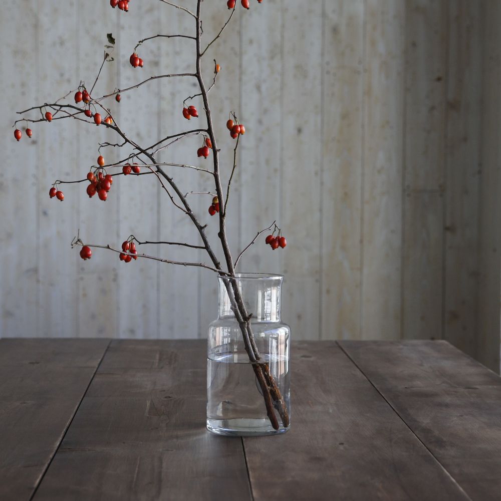 再生ガラスで作られたリューズガラスシリーズは、素朴な風合いが特徴です。 "ネック"はシンプルながらも様々なシーンで活躍してくれる、shesayのロングセラーアイテム。 すこし大きめなので安定感があり、季節の枝物をサッと活けるだけで簡単に飾ることができ、お花初心者の方でも活けやすい形になっています。 大ぶりな枝物から季節のお花まできれいに映え、どんなお部屋にも合うデザイン。 春夏には桜やミモザ、ドウダンツツジ、秋冬にはスモークツリーやモミの木など季節を問わずお使いいただけます。 またリューズガラスは比較的軽量で、開口部も広いのでお手入れもしやすいのも嬉しいポイントです。 >>フラワーベースに合わせて使えるアカシアの蓋はこちら リューズガラスとは、再利用されたガラスのことをいいます。一般的には「リサイクルガラス」や「再生ガラス」とも呼ばれ、一度は捨てられたり不要になったガラスをリサイクルして使っています。そのためリューズガラスは、環境にやさしいサスティナブル( Sustainable =持続可能)な社会への取り組みとしても注目されています。リューズガラス製品は、ひとつひとつが職人たちの手によるハンドメイド。炉(ろ)で溶かしたガラスを竿(さお)ですくい取り、型の中で息を吹き込みながら作る「型吹き成形」という技法で作られていますので、たとえ同じ型のシリーズであっても、全く同じ仕上がりになるということはありません。ハンドメイドならではの、ガラス表面に生まれるわずかな“しわ”や小さな気泡、繊細な表情の違いなどをお楽しみいただけると思います。さらにリューズガラスの風合いは、無機質な印象になりがちなガラス製品に独特のあたたかみや素朴さをもたらしてくれます。吹きガラスならではの、やや薄くて軽い作りも魅力のひとつです。ガラスの流れや小さな気泡、口の部分に盛り上がった箇所などがあったりしますが、これは吹き竿からガラスをカットした後、熱処理した時にガラスが流れて出来るもので、これもまた吹きガラスの特徴です。 *リューズガラスは再生ガラスを使用した当社商標登録商品です。 shesayで人気のリューズガラスシリーズです。その中でも一番人気の"ネック"です。春夏は植物を飾ったり秋冬にはライトを入れたりと様々なディスプレイができるので、お店に四季を取り入れやすいです。SNSでの露出も高く、年間通して販売実績のあるアイテムです。shesayのアイテムはまだ取扱いがないお客さまも、是非ご検討ください! >>インテリアグリーン・ガーデン