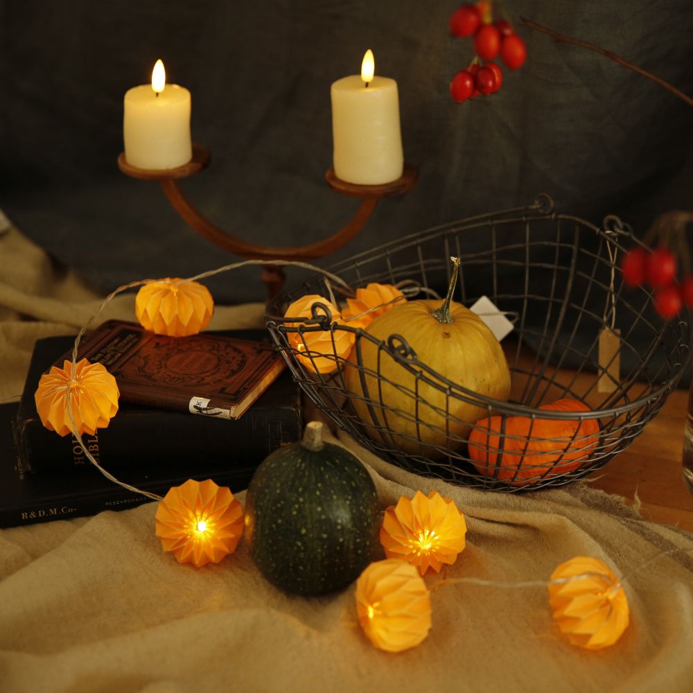 かぼちゃのようなペーパーシェードがついたLEDライトです。ハロウィンはもちろん、通年を通しておちでのデコレーションを楽しんで頂けるアイテムです。お誕生日やホームパーティーを華やかに演出してくれます。子供部屋のデコレーションとしてもおすすめです。かわいさと温かみのあるライトでおうち時間を彩ります。 ■LEDライト「ワイヤータイプ」はこちら 火事の心配がなく、小さなお子さまやペットがいるご家庭でも安心してご使用いただけます。電池で点灯しますので、コンセントが無い場所など、飾るところを気にせずお使いいただけます。 >>ライト・照明