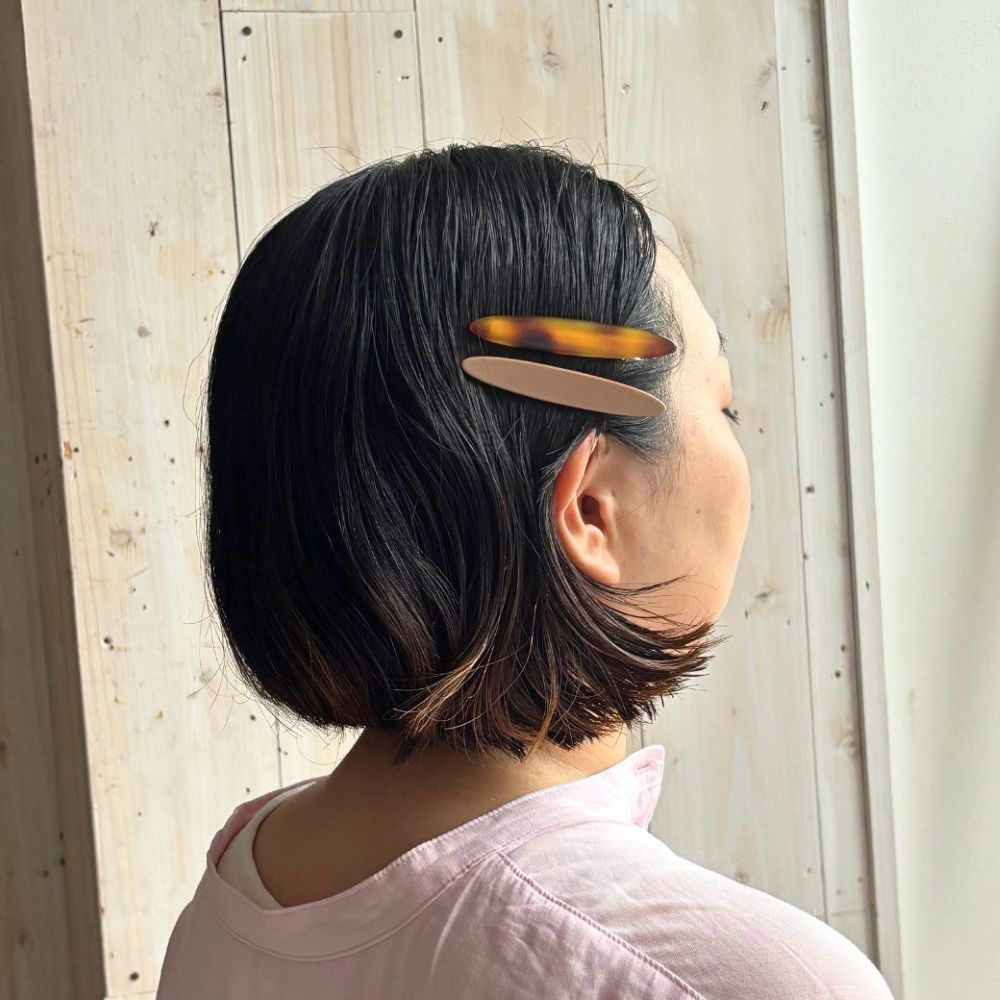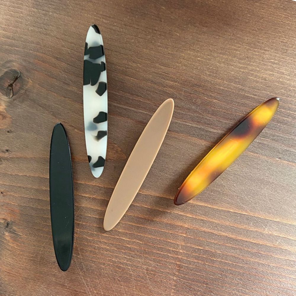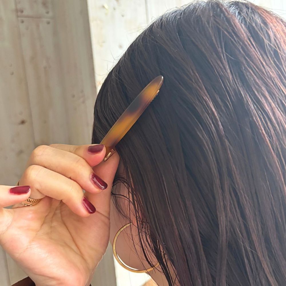 異なるカラーの2本セットで、重ね付けや単品使いで自在にアレンジできるアクリルヘアピン。シンプルながらも存在感があり、カジュアルから洗練されたヘアスタイルまで幅広くマッチします。バランスの良い色の組み合わせで展開し、気分やコーディネートに合わせて自由に楽しめる、大人のためのヘアアクセサリーです。 アクリル(合成樹脂)は、軽量で透明感があり、耐久性に優れたプラスチック素材です。ヘアピンやアクセサリー、小物などに広く使用されており、ガラスのような美しい光沢を持ちながらも、割れにくく扱いやすいのが特長です。 >>アクセサリー