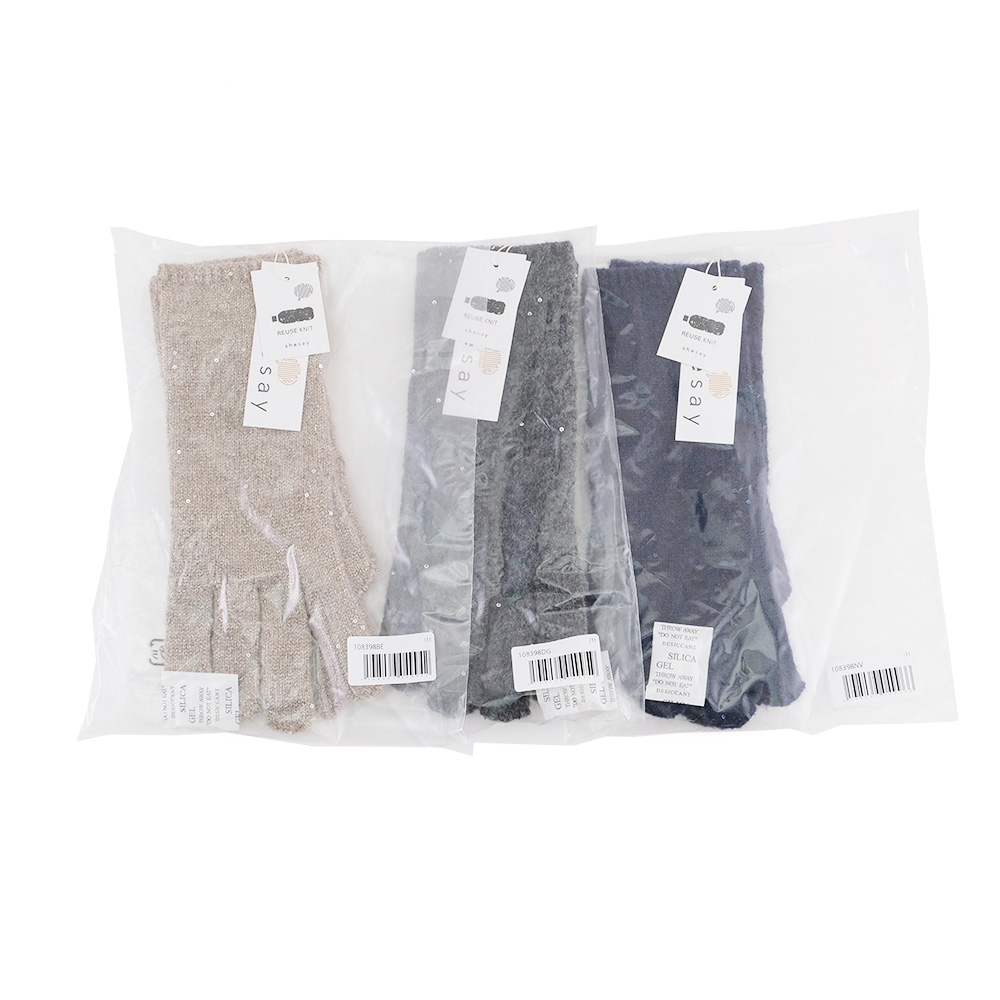 繊細に輝くスパンコールとラメ糸が、冬のコーディネートを華やかに彩るグローブ。上品なきらめきを引き立てるため、シルエットとカラーはあえてベーシックに。派手すぎず洗練されたデザインで、カジュアルにもエレガントにもマッチ。指先まで美しく演出する、大人の冬小物です。 ペットボトルを粉砕し、再び使える「資源」として再度加工された、リサイクル素材を使用しています。石油から製造されるプラスチックの消費量を低減し、限りある資源を少しでも大切にした環境に優しいニットです。 >>ファッション雑貨