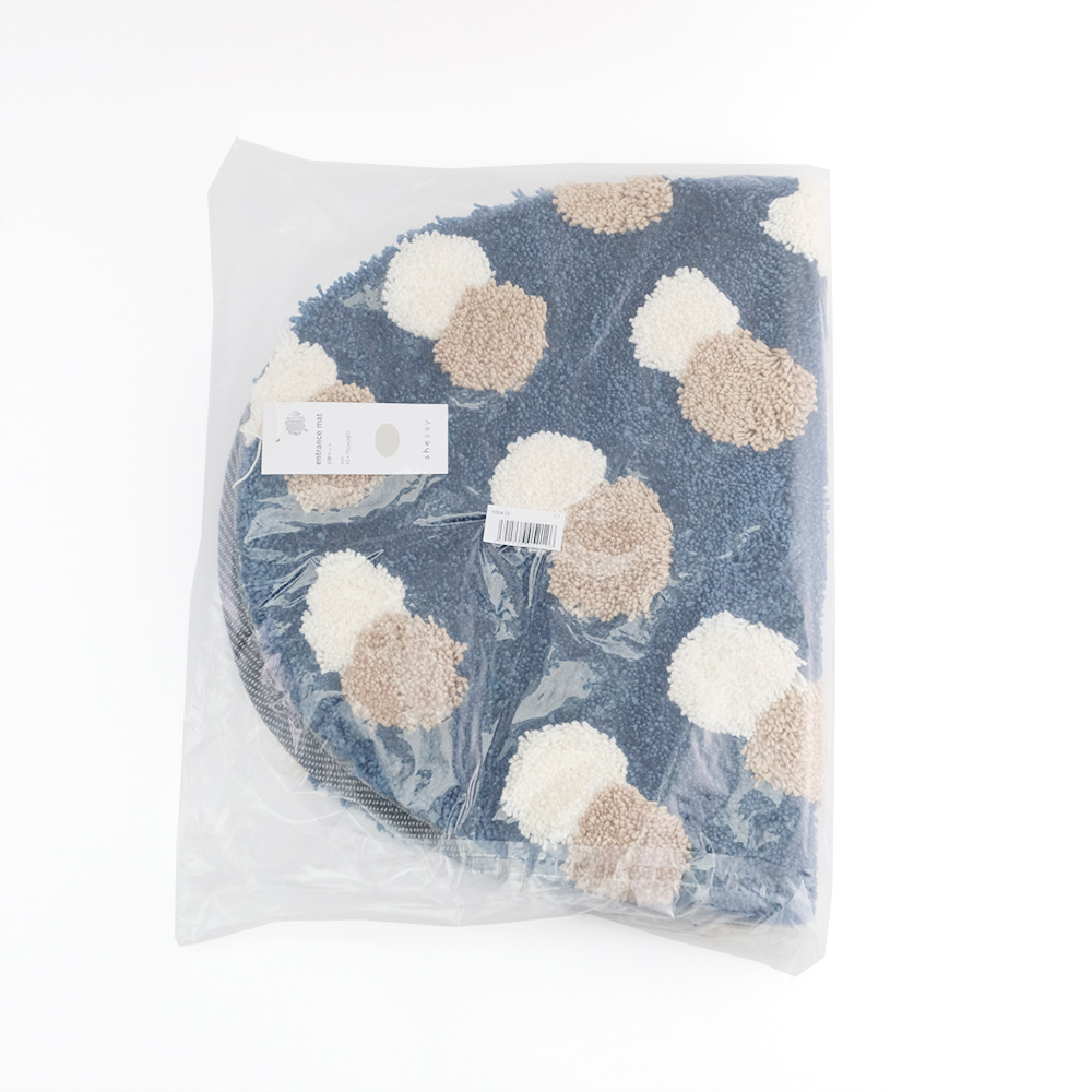 これまでブロックプリントアイテムで人気だった柄を、マシンフック製法で立体的に再現しました。糸で絵を描くように織り上げたリズムよく並んだ重なりドットの柄。優しい色合いと凹凸のある表情が、玄関をあたたかな印象に演出してくれます。たっぷりと糸を使ったふかふかの表面は、足元にやさしい踏み心地。裏面には滑り止め加工が施されているため、安心してお使いいただけます。さらに、ご自宅で洗えるのも嬉しいポイント。お客様を迎える玄関を彩るだけでなく、毎日を心地よくしてくれる、デザインと実用性を兼ね備えた玄関マットです。 ■フック織りのラグシリーズはこちら >>インテリアファブリック