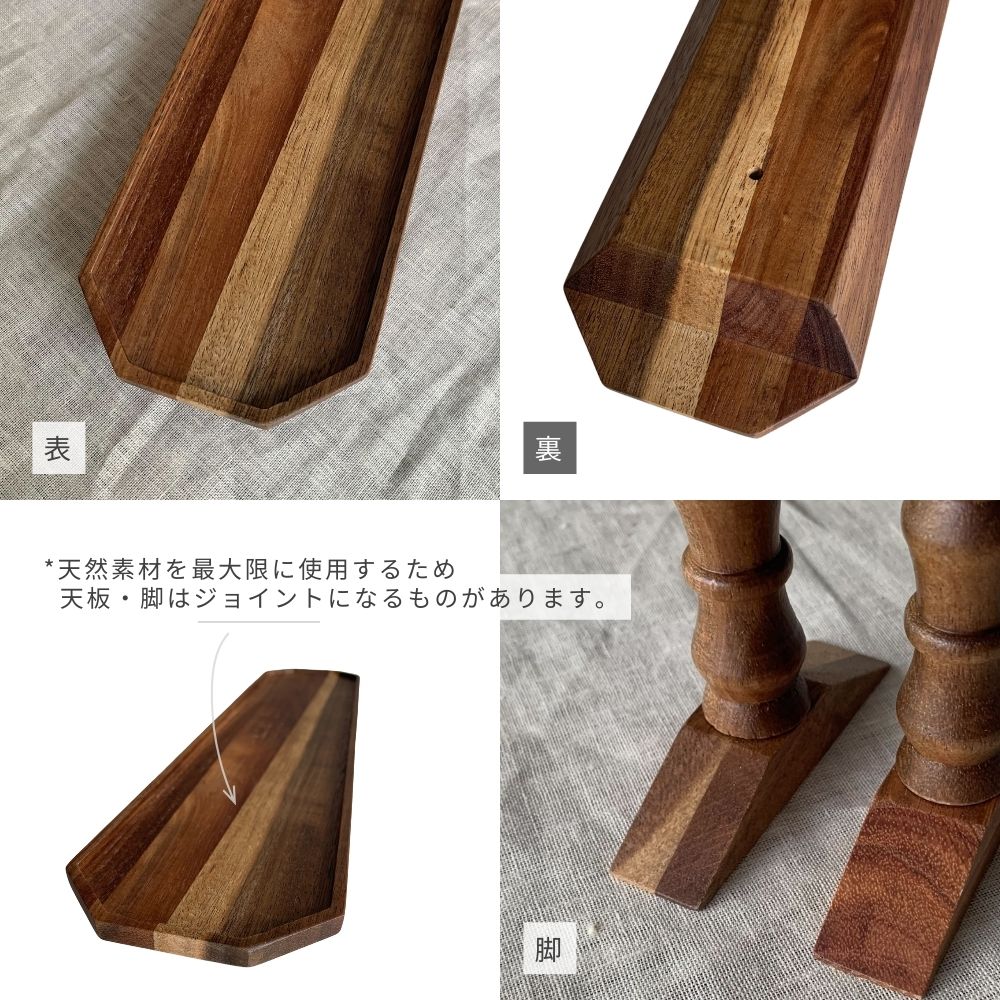 まるで映画のワンシーンのように、テーブルの中央に置くだけで存在感を放つ、高台付きの木製トレーです。その美しい佇まいは、上に置くものを際立たせてテーブルに奥行きと立体感を与えます。クリスマスやお誕生日などのパーティーシーンで、キャンドルを複数並べて幻想的な雰囲気を演出したり、花やグリーンを飾ってテーブルを華やかに彩るデコレーションから、門松や鏡餅を飾るお正月などの季節のしつらえまで、様々なシーンで特別な空間を演出します。脚は取り外し可能で、トレーだけとしてもお使いいただける優れもの。収納する場所にも困らないアイテムです。 ※天板はジョイントになるものがあります。天然素材を最大限に使用するため、ご理解ください。 ■アカシアウッドのアイテムはこちら ■脚付きの食器はこちら ■アクセサリーディスプレイ関連はこちら ACACIA WOODは中心部が濃い茶色で周辺部は白色と、濃淡の差がはっきりとしています。これらを木材そのものの特徴として捉え、原材料を無駄なく使い、限りある資源を大切にしたいと考えています。また、手作りのため商品のサイズや形状にも多少の誤差があります。素材そのものが持つ個体差や、大量生産にはないそれぞれの表情をお楽しみください。 >>インテリア雑貨