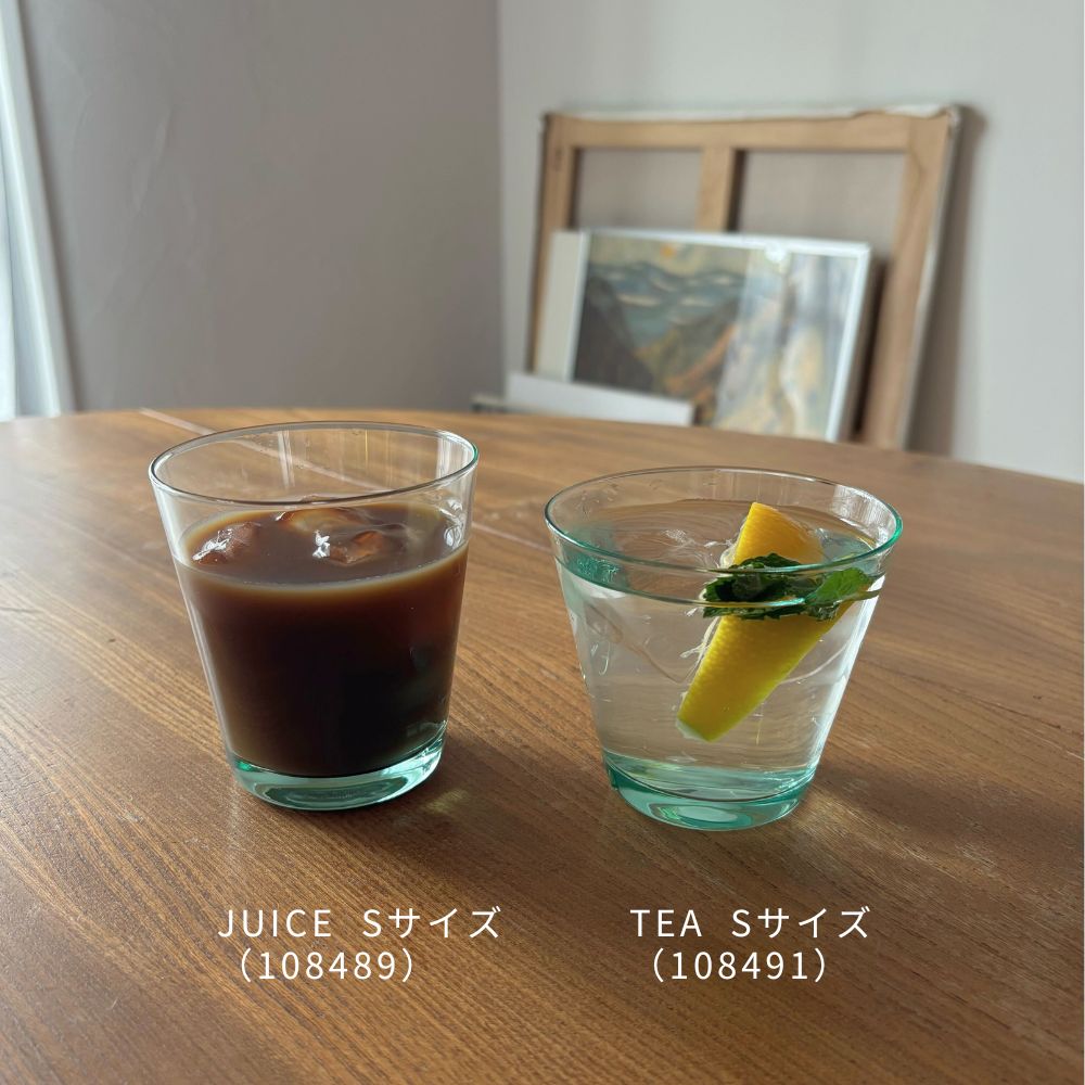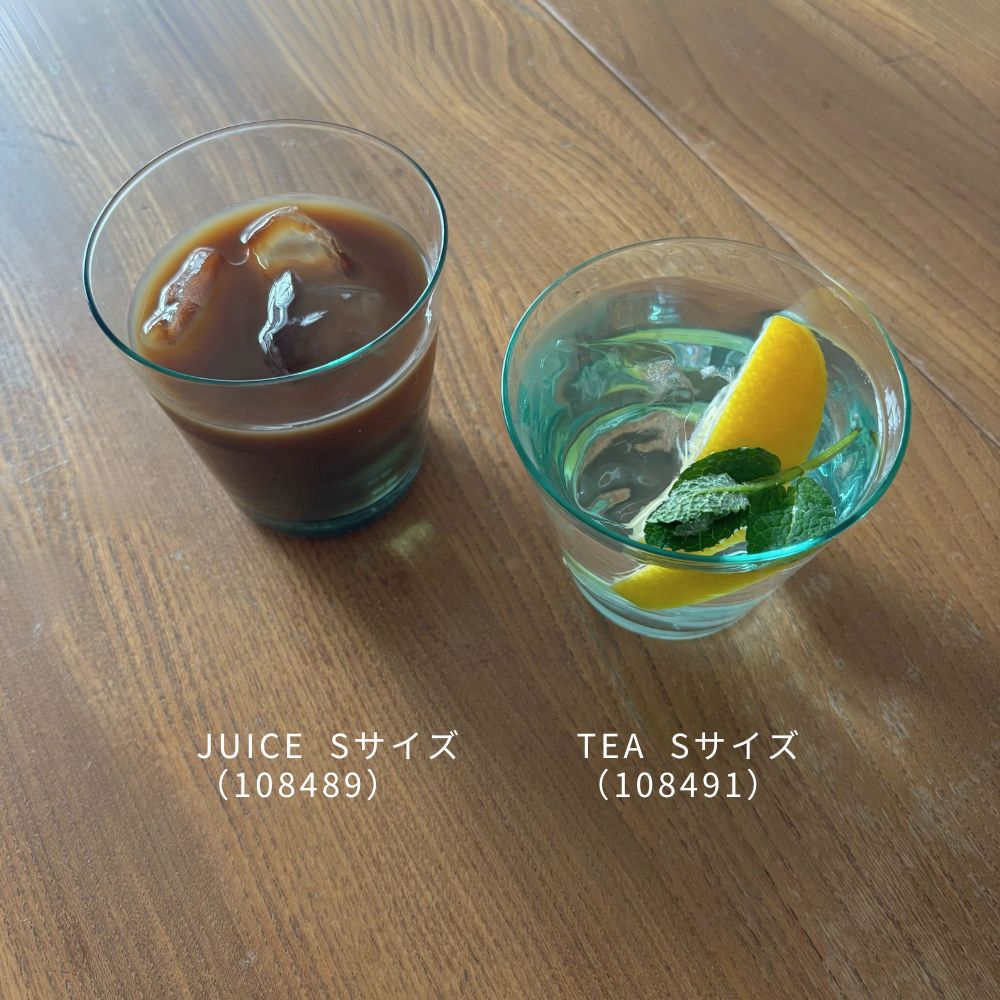 シンプルなフォルムで、どんなインテリアにも馴染むすっきりとした定番グラス。 こちらの TEA シリーズは、飲み口がワイドで氷も入れやすいタイプ。 デイリー使いはもちろん、ちょっとした来客にも活躍してくれます。 S サイズは小さな手の人や、少量だけを楽しみたい人にもおすすめです。 ▼旧品番(ベトナム産)は完売しました リューズガラスとは、再利用されたガラスのことをいいます。一般的には「リサイクルガラス」や「再生ガラス」とも呼ばれ、一度は捨てられたり不要になったガラスをリサイクルして使っています。そのためリューズガラスは、環境にやさしいサスティナブル( Sustainable =持続可能)な社会への取り組みとしても注目されています。リューズガラス製品は、ひとつひとつが職人たちの手によるハンドメイド。炉(ろ)で溶かしたガラスを竿(さお)ですくい取り、型の中で息を吹き込みながら作る「型吹き成形」という技法で作られていますので、たとえ同じ型のシリーズであっても、全く同じ仕上がりになるということはありません。ハンドメイドならではの、ガラス表面に生まれるわずかな“しわ”や小さな気泡、繊細な表情の違いなどをお楽しみいただけると思います。さらにリューズガラスの風合いは、無機質な印象になりがちなガラス製品に独特のあたたかみや素朴さをもたらしてくれます。吹きガラスならではの、やや薄くて軽い作りも魅力のひとつです。ガラスの流れや小さな気泡、口の部分に盛り上がった箇所などがあったりしますが、これは吹き竿からガラスをカットした後、熱処理した時にガラスが流れて出来るもので、これもまた吹きガラスの特徴です。 *リューズガラスは再生ガラスを使用した当社商標登録商品です。 >>食器・キッチン