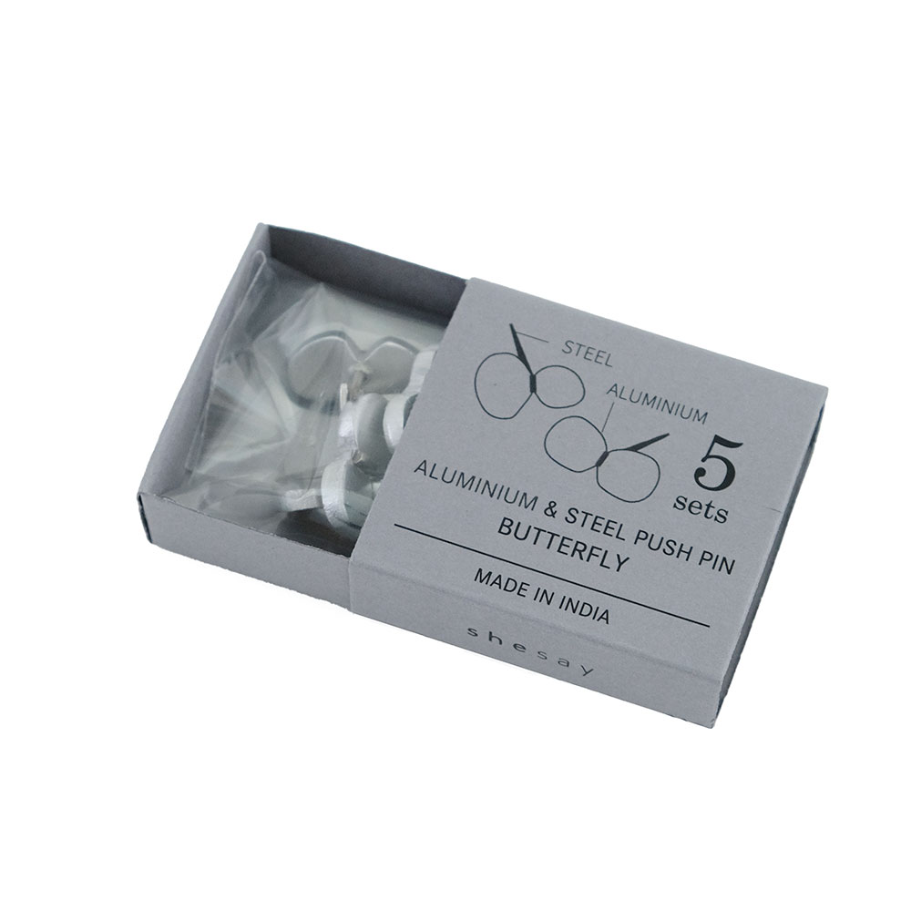 アルミ素材でかたどったチョウチョのモチーフが、まるで壁にとまっているような愛らしい押しピンです。ポストカードやお気に入りの紙ものを飾るとき、味気ない押しピンではもったいない。そんな「ちょっとした残念さ」を、見た目も気分も上がる小さなアクセントで解決します。ピン部分はスチール製で、実用性にもこだわりを。かわいさだけじゃなく、しっかり留まる安心感も兼ね備えています。 ■壁にとまっているような飾りピンのシリーズはこちら ■ステーショナリー・クラフト関連はこちら ■アルミのアイテムはこちら アルミニウム(アルミ)は、軽くて丈夫で熱や電気を伝えやすい、製品の加工がしやすく、使い終わった後のリサイクルも容易で優れた特徴を多く持つ金属です。その丈夫な素材から自動車やパソコンなどの部品、航空機の機体などにも使われています。 >>生活雑貨・日用品