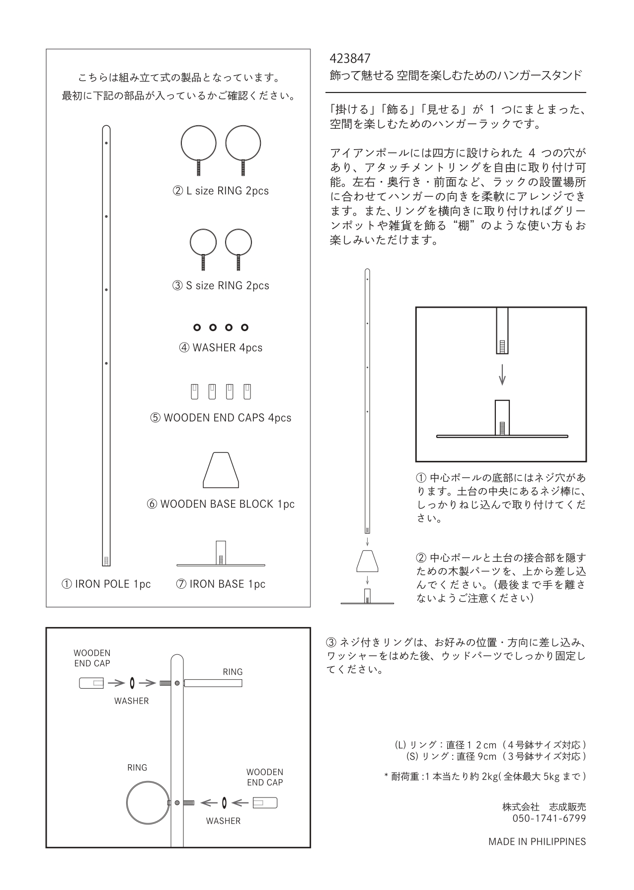 サイズ | 底部直径30×高さ150cm リング(L):直径12cm リング(S):直径9cm |