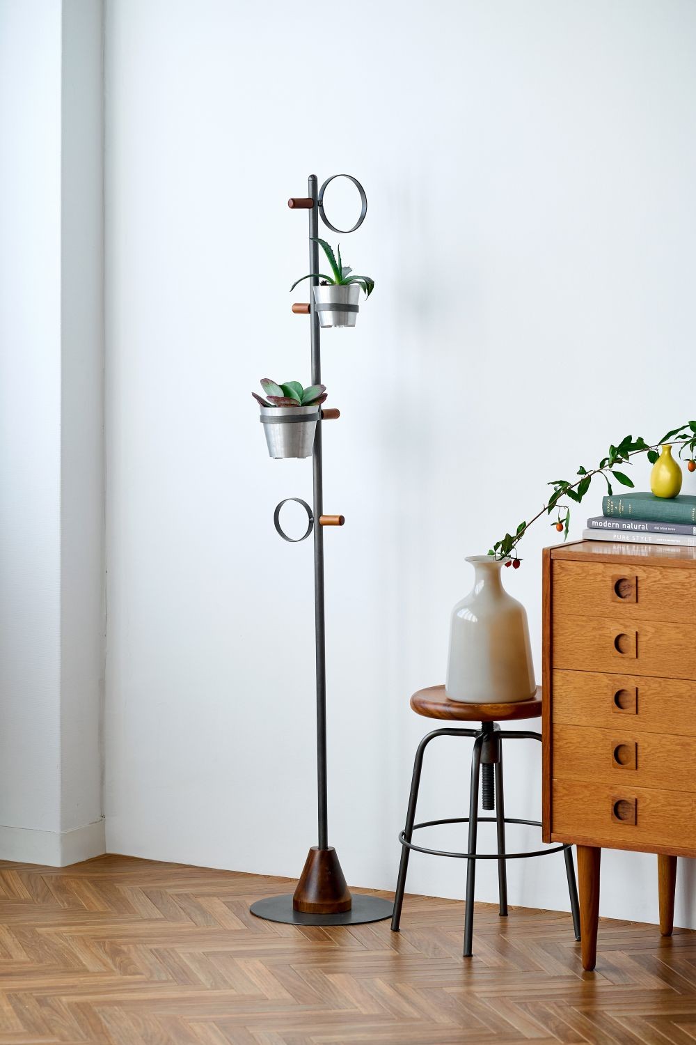 アカシアの木の温もりと、無骨で無駄のないアイアンの構造美。そのコントラストが際立つスタイリッシュなハンガーラックです。アイアンポールには四方に設けられた4つの穴があり、アタッチメントリングを自由に取り付け可能。左右・奥行き・前面など、ラックの設置場所に合わせてハンガーの向きを柔軟にアレンジできます。また、リングを横向きに取り付ければグリーンポットや雑貨を飾る“棚”のような使い方も。「掛ける」「飾る」「見せる」が1つにまとまった、空間を楽しむためのハンガーラックです。 shesayのIRON(アイアン)シリーズは、一つ一つ職人の手作業により作られています。そのため、同じ商品でも色・形・大きさに微妙な違いが生じる場合がございます。ハンドメイドならではの風合いとしてお楽しみください。 >>家具