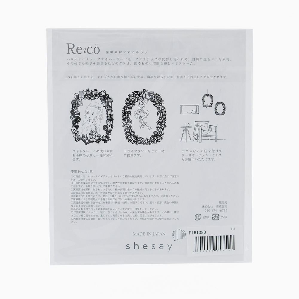 【Re:co】は、循環素材やリサイクルを取り入れた、繰り返し大切に使えるサステナブルなシリーズです。人にも地球にもやさしい素材を選び、ものや時間、気持ちを循環させる暮らしを提案します。 バルカナイズド・ファイバーボードは、プラスチックの代替と言われる、自然に還るエコな素材。一枚の紙から広がる、シンプルで自由な切り絵の世界。微細で滑らかな加工技術がその美しさを際立たせます。 軽量なので、細いピンひとつで簡単に取り付け可能。お子様の写真を飾るフォトフレームの代わりとして、またはドライフラワーと組み合わせて飾るほか、テグスなどの紐を付ければリースオーナメントとしてもお楽しみいただけます。 ■【Re:co】シリーズはこちら バルカナイズド・ファイバーボードは、セルロースを原料として作られます。プラスチックの代替と言われる、自然に還るエコな素材で、石油化学製品に代わる環境にやさしい素材です。 >>インテリア雑貨