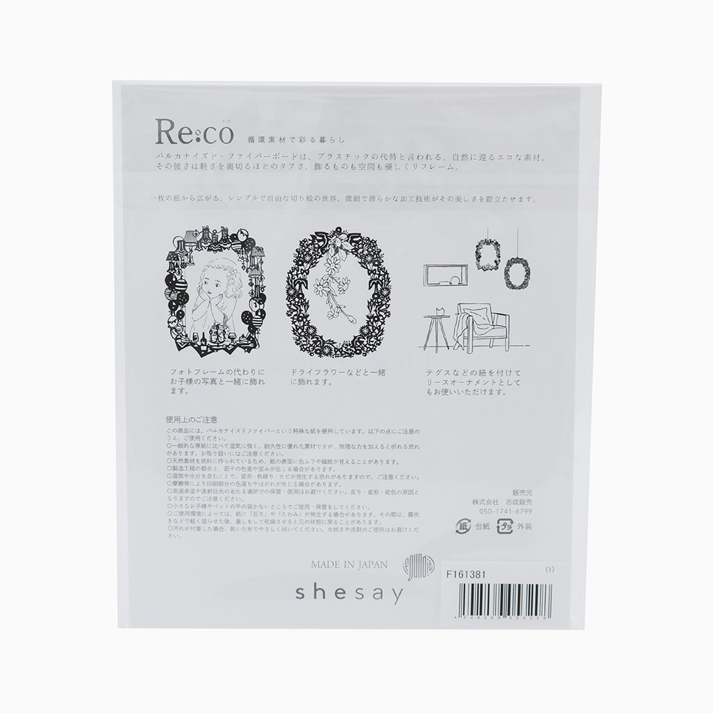 【Re:co】は、循環素材やリサイクルを取り入れた、繰り返し大切に使えるサステナブルなシリーズです。人にも地球にもやさしい素材を選び、ものや時間、気持ちを循環させる暮らしを提案します。 バルカナイズド・ファイバーボードは、プラスチックの代替と言われる、自然に還るエコな素材。一枚の紙から広がる、シンプルで自由な切り絵の世界。微細で滑らかな加工技術がその美しさを際立たせます。 軽量なので、細いピンひとつで簡単に取り付け可能。お子様の写真を飾るフォトフレームの代わりとして、またはドライフラワーと組み合わせて飾るほか、テグスなどの紐を付ければリースオーナメントとしてもお楽しみいただけます。 ■【Re:co】シリーズはこちら バルカナイズド・ファイバーボードは、セルロースを原料として作られます。プラスチックの代替と言われる、自然に還るエコな素材で、石油化学製品に代わる環境にやさしい素材です。 >>インテリア雑貨