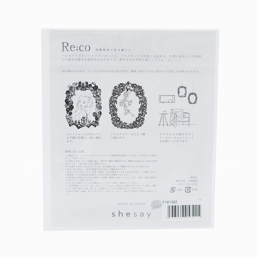 【Re:co】は、循環素材やリサイクルを取り入れた、繰り返し大切に使えるサステナブルなシリーズです。人にも地球にもやさしい素材を選び、ものや時間、気持ちを循環させる暮らしを提案します。 バルカナイズド・ファイバーボードは、プラスチックの代替と言われる、自然に還るエコな素材。一枚の紙から広がる、シンプルで自由な切り絵の世界。微細で滑らかな加工技術がその美しさを際立たせます。 軽量なので、細いピンひとつで簡単に取り付け可能。お子様の写真を飾るフォトフレームの代わりとして、またはドライフラワーと組み合わせて飾るほか、テグスなどの紐を付ければリースオーナメントとしてもお楽しみいただけます。 ■【Re:co】シリーズはこちら バルカナイズド・ファイバーボードは、セルロースを原料として作られます。プラスチックの代替と言われる、自然に還るエコな素材で、石油化学製品に代わる環境にやさしい素材です。 >>インテリア雑貨