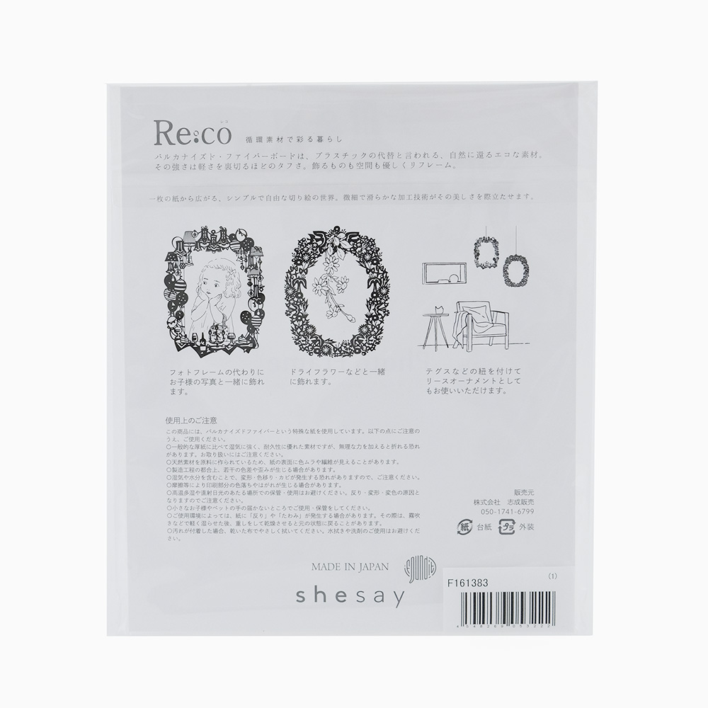 【Re:co】は、循環素材やリサイクルを取り入れた、繰り返し大切に使えるサステナブルなシリーズです。人にも地球にもやさしい素材を選び、ものや時間、気持ちを循環させる暮らしを提案します。 バルカナイズド・ファイバーボードは、プラスチックの代替と言われる、自然に還るエコな素材。一枚の紙から広がる、シンプルで自由な切り絵の世界。微細で滑らかな加工技術がその美しさを際立たせます。 軽量なので、細いピンひとつで簡単に取り付け可能。お子様の写真を飾るフォトフレームの代わりとして、またはドライフラワーと組み合わせて飾るほか、テグスなどの紐を付ければリースオーナメントとしてもお楽しみいただけます。 ■【Re:co】シリーズはこちら バルカナイズド・ファイバーボードは、セルロースを原料として作られます。プラスチックの代替と言われる、自然に還るエコな素材で、石油化学製品に代わる環境にやさしい素材です。 >>インテリア雑貨