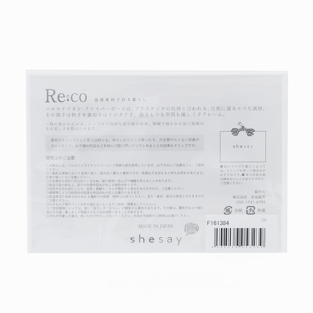 【Re:co】は、循環素材やリサイクルを取り入れた、繰り返し大切に使えるサステナブルなシリーズです。人にも地球にもやさしい素材を選び、ものや時間、気持ちを循環させる暮らしを提案します。 バルカナイズド・ファイバーボードは、プラスチックの代替と言われる、自然に還るエコな素材。一枚の紙から広がる、シンプルで自由な切り絵の世界。微細で滑らかな加工技術がその美しさを際立たせます。 写真やカードを傷つけずにやさしく挟み、飾るものを引き立てます。通常のクリップして使う以外にも、手帳やノートにブックマークとして使ったり、穴を開けたくない写真やポストカード、お子様の作品などを挟んで壁に押しピンでとめることの出来るクリップです。 ■【Re:co】シリーズはこちら バルカナイズド・ファイバーボードは、セルロースを原料として作られます。プラスチックの代替と言われる、自然に還るエコな素材で、石油化学製品に代わる環境にやさしい素材です。 >>インテリア雑貨