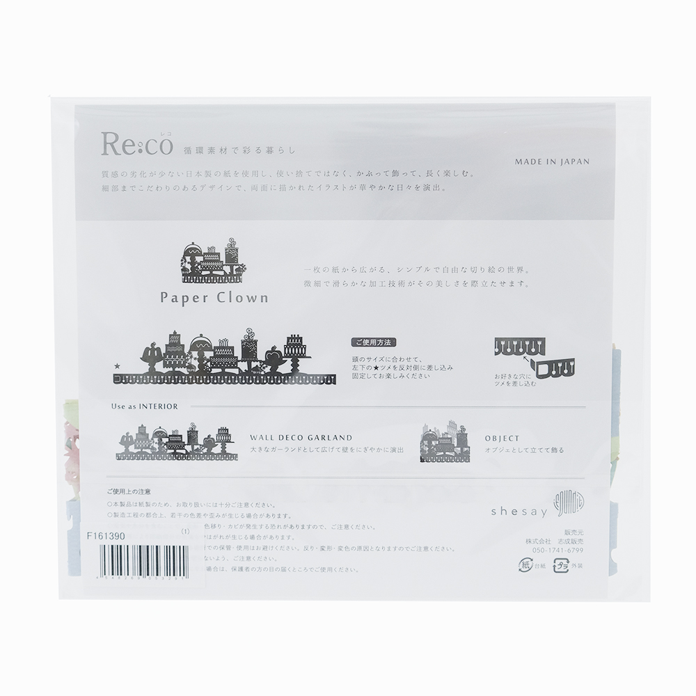 【Re:co】は、循環素材やリサイクルを取り入れた、繰り返し大切に使えるサステナブルなシリーズです。人にも地球にもやさしい素材を選び、ものや時間、気持ちを循環させる暮らしを提案します。 細部までこだわりのあるデザインで、両面に描かれたイラストが華やかな日々を演出します。一枚の紙から広がる、シンプルで自由な切り絵の世界。微細で滑らかな加工技術がその美しさを際立たせます。 「かぶる」も「飾る」も楽しめる、存在感のあるペーパークラウン。使った後は、お部屋のインテリアとしてオブジェやガーランドとしてお使い頂くことができ、”思い出”をそのまま飾れます。 ■【Re:co】シリーズはこちら ■オブジェ・置物関連はこちら 質感の劣化が少ない日本製の紙を使用していて、使い捨てではなく長く楽しめます。 >>インテリア雑貨