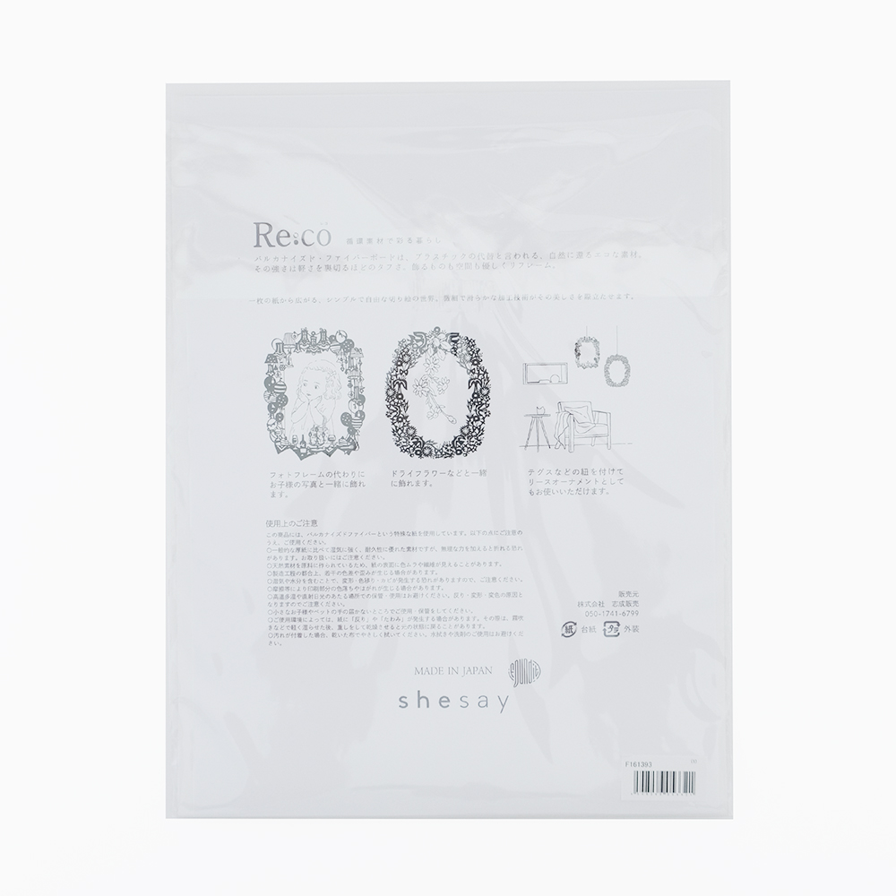 【Re:co】は、循環素材やリサイクルを取り入れた、繰り返し大切に使えるサステナブルなシリーズです。人にも地球にもやさしい素材を選び、ものや時間、気持ちを循環させる暮らしを提案します。 バルカナイズド・ファイバーボードは、プラスチックの代替と言われる、自然に還るエコな素材。一枚の紙から広がる、シンプルで自由な切り絵の世界。微細で滑らかな加工技術がその美しさを際立たせます。 軽量なので、細いピンひとつで簡単に取り付け可能。お子様の作品を飾るピクチャーフレームの代わりとして、またはドライフラワーと組み合わせて飾るほか、テグスなどの紐を付ければリースオーナメントとしてもお楽しみいただけます。 ■【Re:co】シリーズはこちら バルカナイズド・ファイバーボードは、セルロースを原料として作られます。プラスチックの代替と言われる、自然に還るエコな素材で、石油化学製品に代わる環境にやさしい素材です。 >>インテリア雑貨