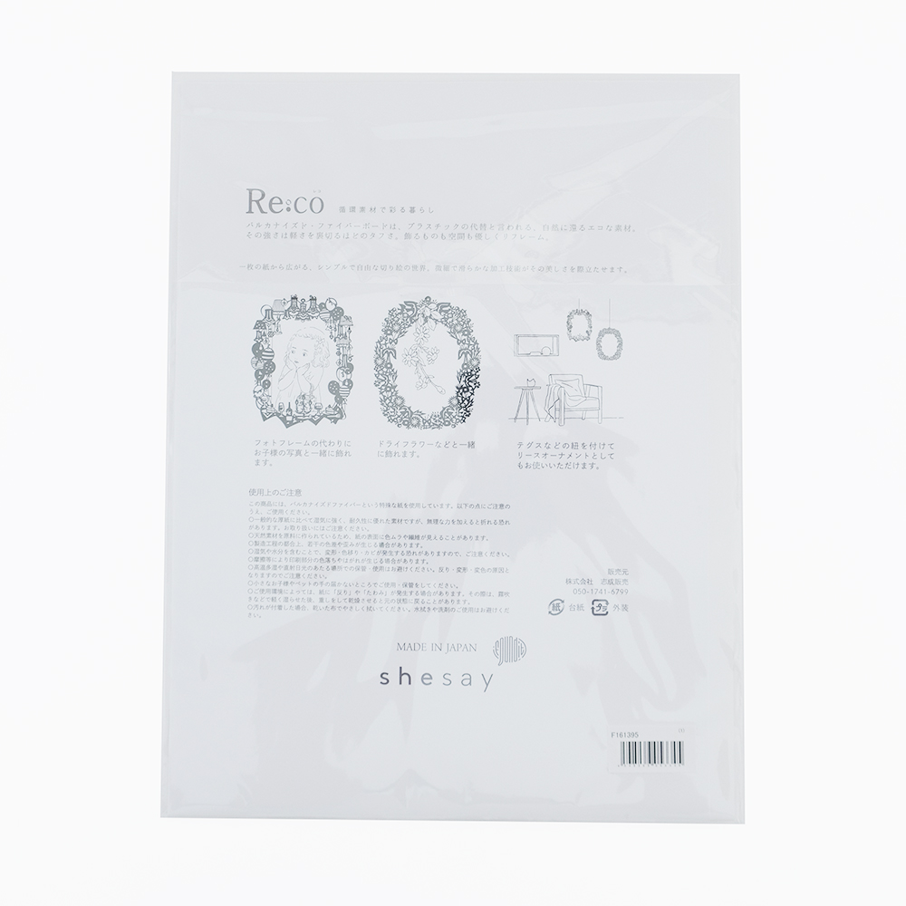 【Re:co】は、循環素材やリサイクルを取り入れた、繰り返し大切に使えるサステナブルなシリーズです。人にも地球にもやさしい素材を選び、ものや時間、気持ちを循環させる暮らしを提案します。 バルカナイズド・ファイバーボードは、プラスチックの代替と言われる、自然に還るエコな素材。一枚の紙から広がる、シンプルで自由な切り絵の世界。微細で滑らかな加工技術がその美しさを際立たせます。 軽量なので、細いピンひとつで簡単に取り付け可能。お子様の作品を飾るピクチャーフレームの代わりとして、またはドライフラワーと組み合わせて飾るほか、テグスなどの紐を付ければリースオーナメントとしてもお楽しみいただけます。 ■【Re:co】シリーズはこちら バルカナイズド・ファイバーボードは、セルロースを原料として作られます。プラスチックの代替と言われる、自然に還るエコな素材で、石油化学製品に代わる環境にやさしい素材です。 >>インテリア雑貨