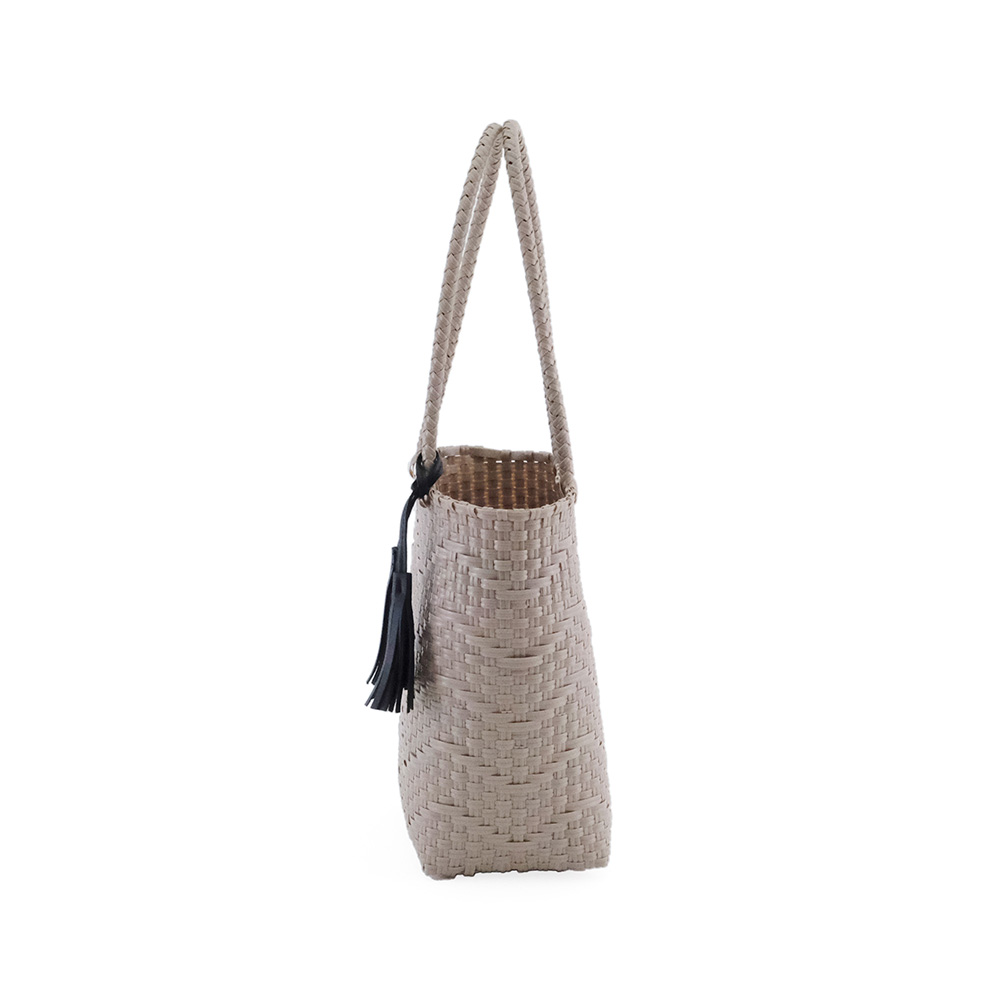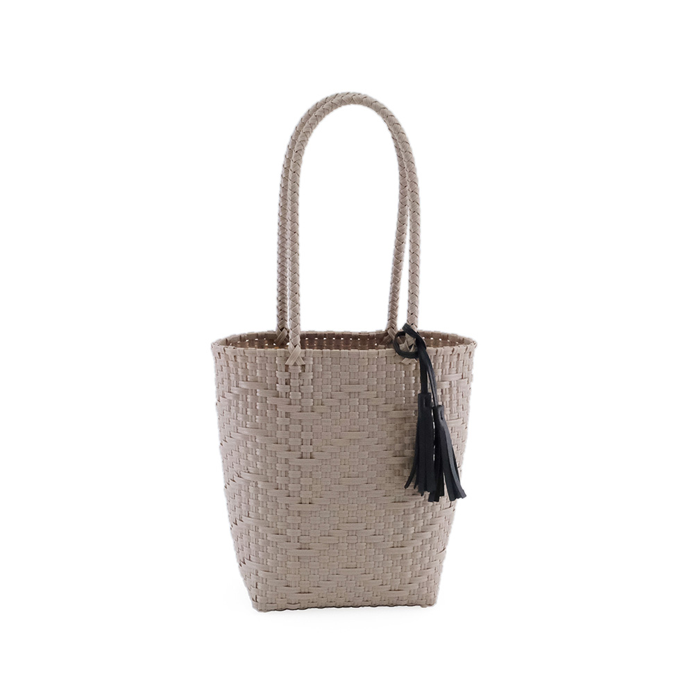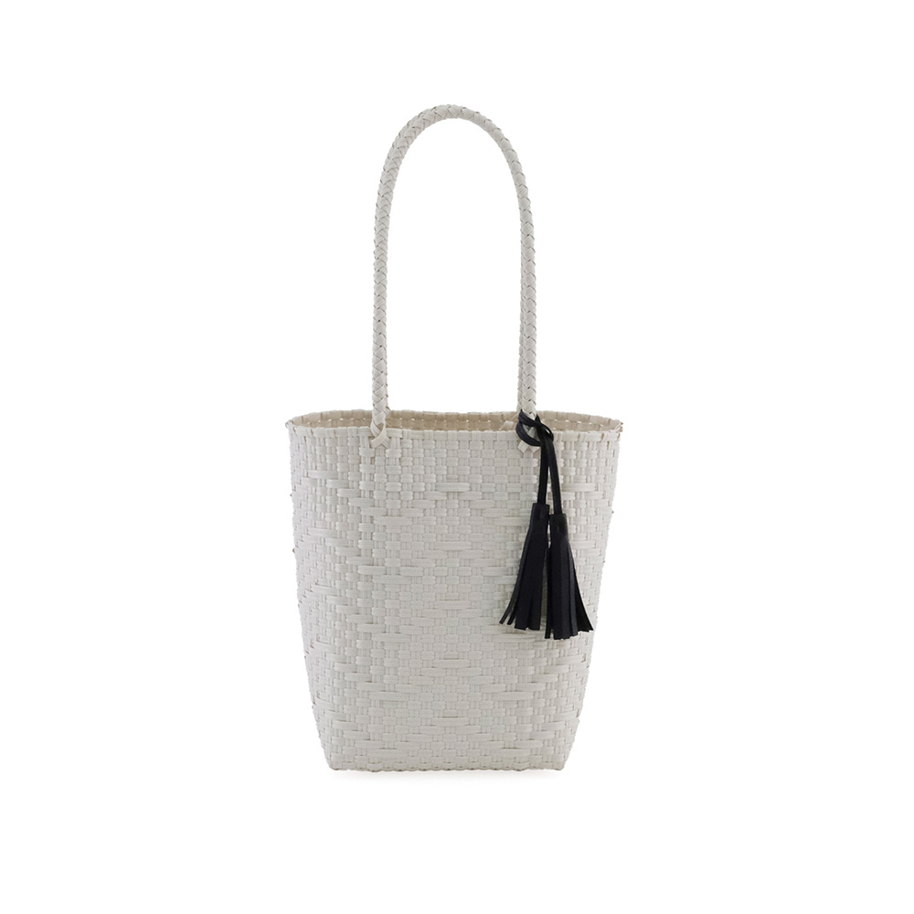 長めのハンドルで肩にもかけやすく、荷物の出し入れもスマートに。ひとつひとつ丁寧に編み上げられた立体的な地模様は、コーディネートに豊かな表情を与えます。シックで上品な佇まいは、普段使いはもちろん、大切な人へ贈る特別なギフトとしても最適。立体的なテクスチャーが織りなす、洗練された大人のためのメルカドバッグです。 使用素材であるポリプロピレンは、丈夫で水に強く、軽くて、耐久性に優れ伸び縮みしにくい素材で型崩れしにくいのが特徴です。また吸水性・吸湿性が低く速乾性や耐候性に優れており、劣化しにくいという特徴もあります。