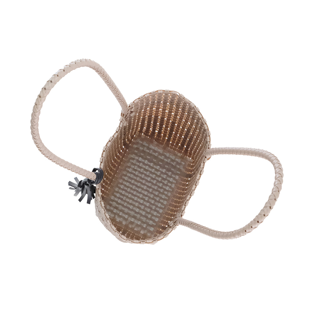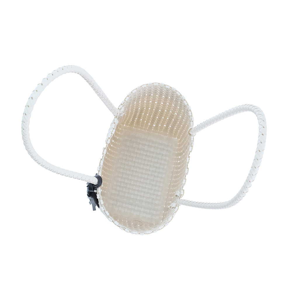 | 注意事項 | 手編み製品の為、編み終わりに段差が生じるものもあります。洋服への引っ掛けにはご注意ください。また、テープの繋ぎ目からほつれる可能性があります。お取り扱いには十分ご注意ください。火のそばに置かないでください。鋭利なものを入れたり、強い衝撃や摩擦、過度の重量を加えると破損の原因となりますのでおやめください。 |