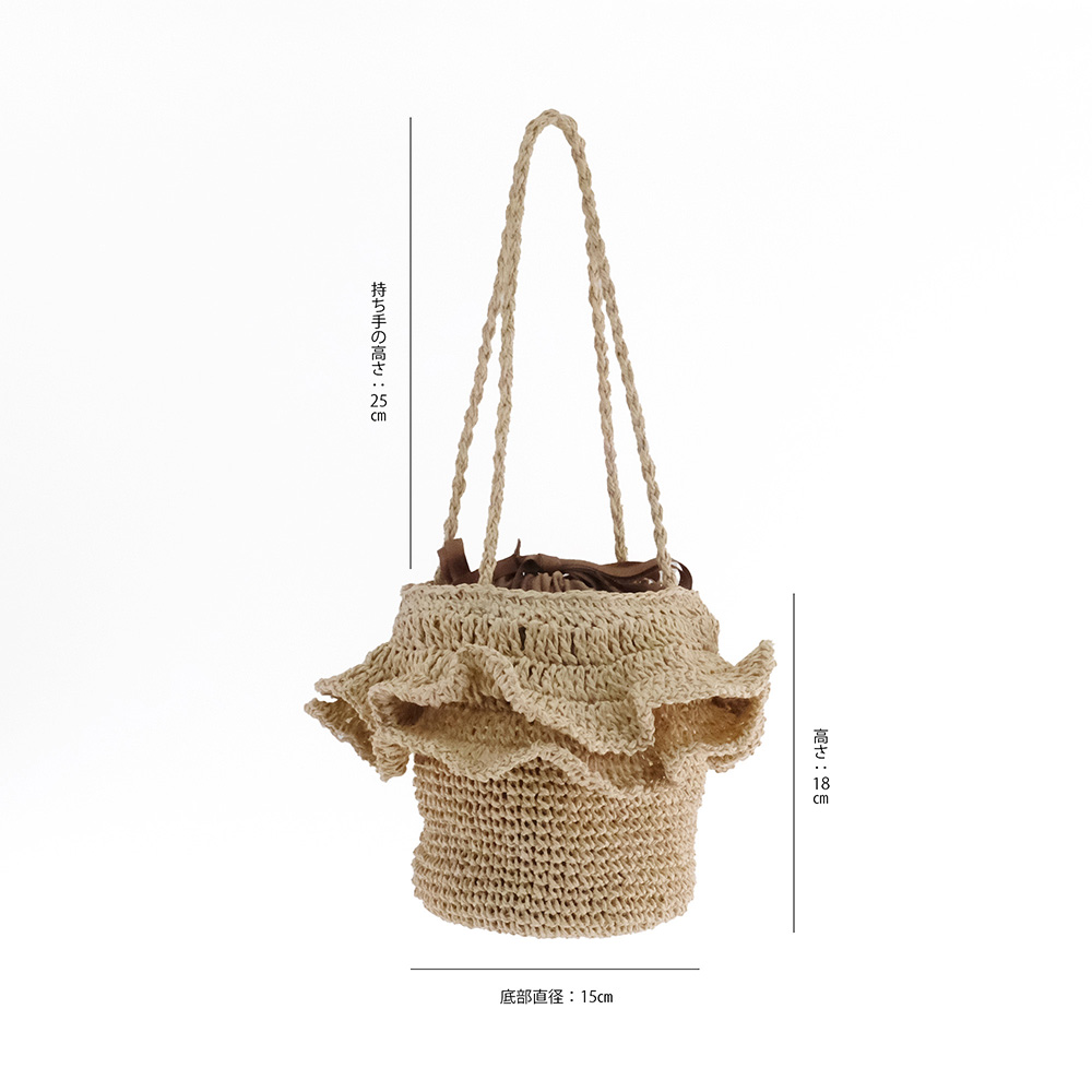 丁寧な手仕事で仕上げられた上品なフリルと、大人女子が楽しめる小ぶりなサイズ感が魅力のショルダーバッグ。フェミニンなスタイルにはもちろん、カジュアルコーデに合わせることで、絶妙な甘辛ミックススタイルが完成します。いつものコーディネートにさりげない華やかさと遊び心をプラスするアイテムです。 ペーパー素材とは紙のことで、紙繊維を糸状に撚ったものです。撚ることで密度が高まり、十分な強度を確保することができます。軽くて丈夫な素材で、帽子やバッグなど様々なアイテムに使用されています。紙は空気を通しやすく、通気性にも優れています。染色もしやすく、天然素材では難しい豊富な色展開や発色が可能な事も特徴の一つです。 >>ファッション