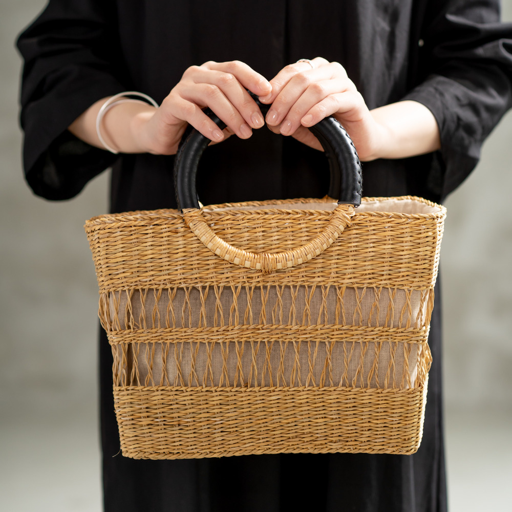 シーグラスの透かし編みが、スタイリングに爽やかな抜け感をプラスします。細部にあしらわれたPUのアクセントがトレンド感を、遊び心のある丸ハンドルが、いつものコーディネートに差をつけて洗練された大人のカジュアルスタイルを完成させます。夏のシンプルコーデに映える、持つだけで気分が上がる主役級バッグです。 SEAGRASS(シーグラス)は日本のイグサに似た天然水草です。ひとつひとつ職人たちによるハンドメイドで生産しています。軽量でありながら強度があため、日常的に使われるバッグや雑貨などに適しています。独特な風合いがあり、ナチュラルな雰囲気を出すことができます。長く使っていくうちに味が出てくるため、経年変化の魅力があります。使い込むほどに愛着が湧いてくるという特徴があります。また、繊細な作業が必要なためハンドメイドファンの方にもおススメです。 >>ファッション