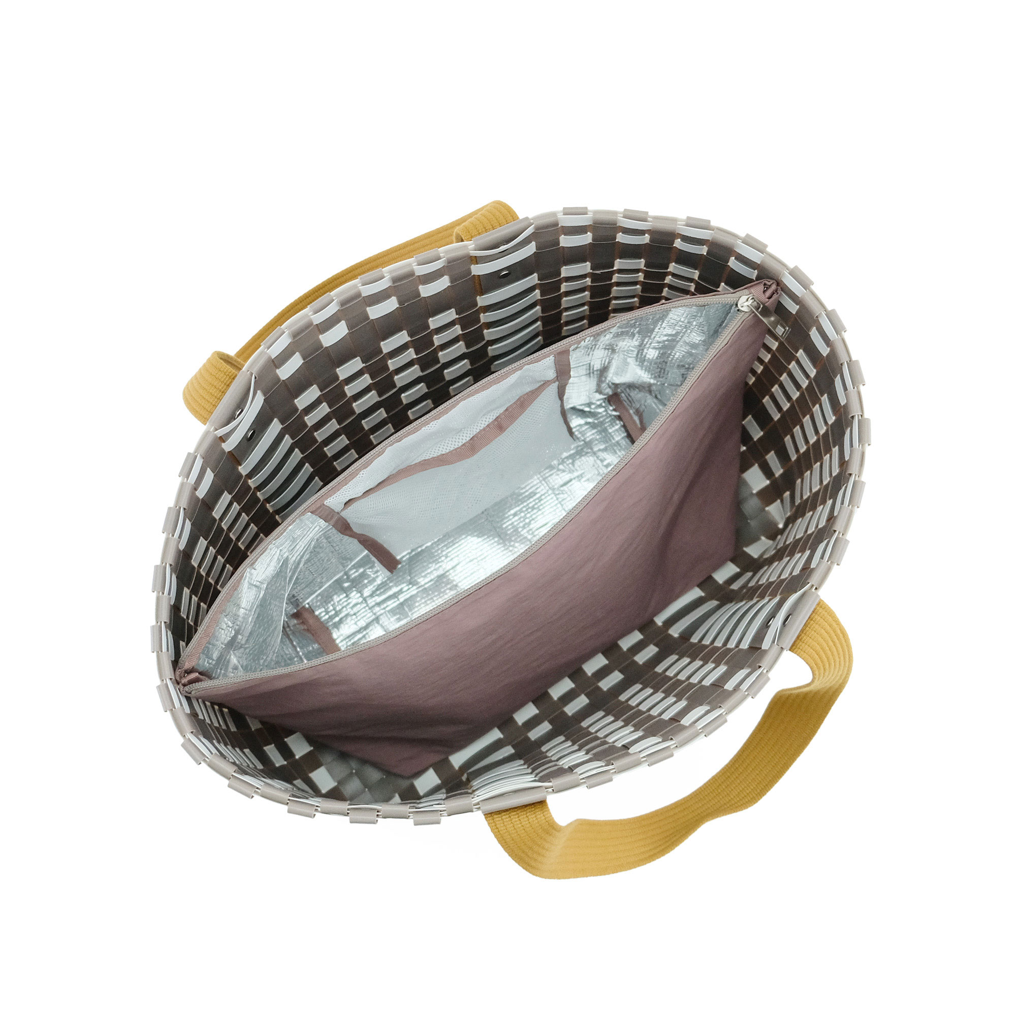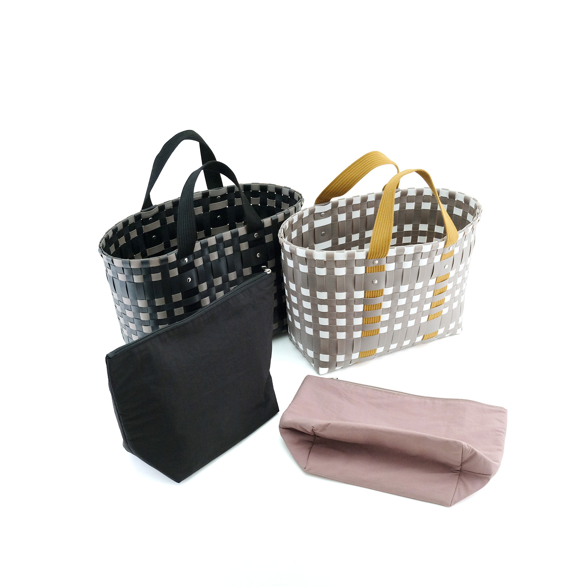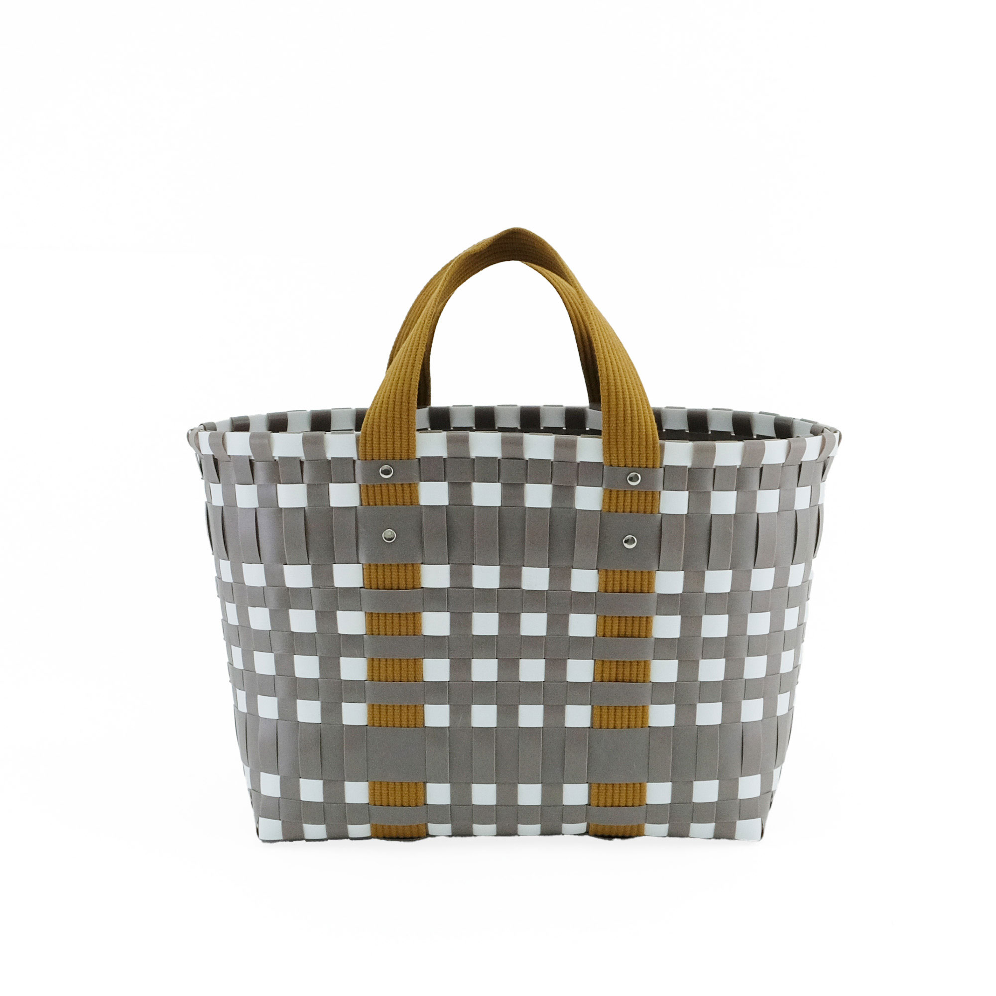 スタイリッシュなブロックチェックのバッグは、ほどよい光沢と丈夫さが魅力のPPブレードで仕上げました。水に強く汚れてもさっと拭けるから、デイリーユースはもちろん、ビーチやレジャーシーンにもぴったり。持ち手には柔らかいテープを採用し、重い荷物も肩や手に負担をかけずに持ち運べます。肩掛けできるLサイズは、ピクニックや週末の買い物に大活躍。一回り小さいSサイズはハンドバッグとして、近所への買い物やランチにちょうど良いサイズです。セパレートで使えるポーチは、内側に保冷素材を使用。保冷剤を入れれば、お弁当や飲み物、お菓子など、冷たい状態をキープしたいものを持ち運ぶのに便利です。 使用素材であるポリプロピレンは、丈夫で水に強く、軽くて、耐久性に優れ伸び縮みしにくい素材で型崩れしにくいのが特徴です。また吸水性・吸湿性が低く速乾性や耐候性に優れており、劣化しにくいという特徴もあります。 >>ファッション