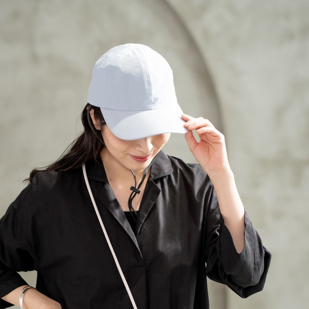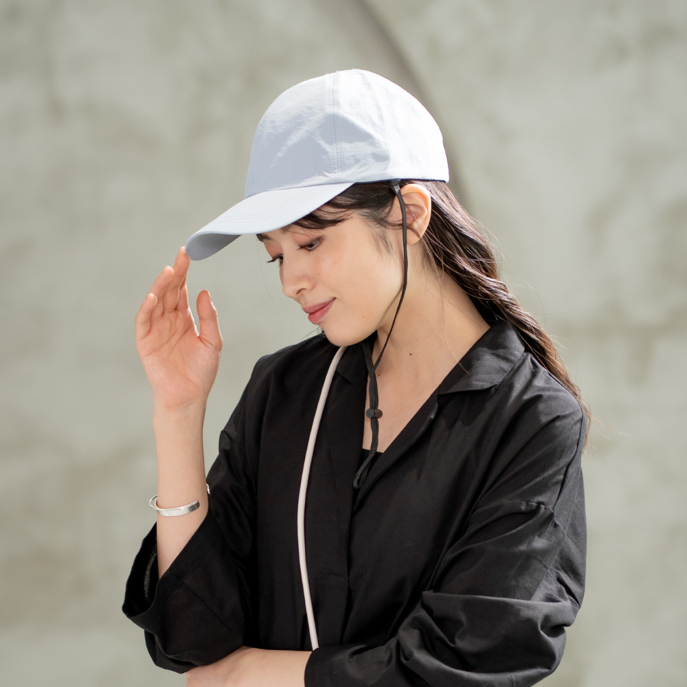 爽やかな色合いと軽やかなナイロン素材がマッチしたキャップ。風に飛ばされにくい顎紐付きだから気軽に日常使いが楽しめます。速乾性に優れたナイロン素材にUV加工を施しているので暑さ対策にもお勧めです。 ナイロン素材は軽いうえに、摩擦に強く、弾力性があるため、ウェアやバッグ、ポーチなどによく使用されています。水や油、海水や薬品、カビなどに強く、耐久性に優れていることから、手入れのし易さも特徴のひとつです。 >>ファッション雑貨