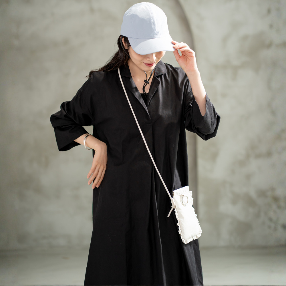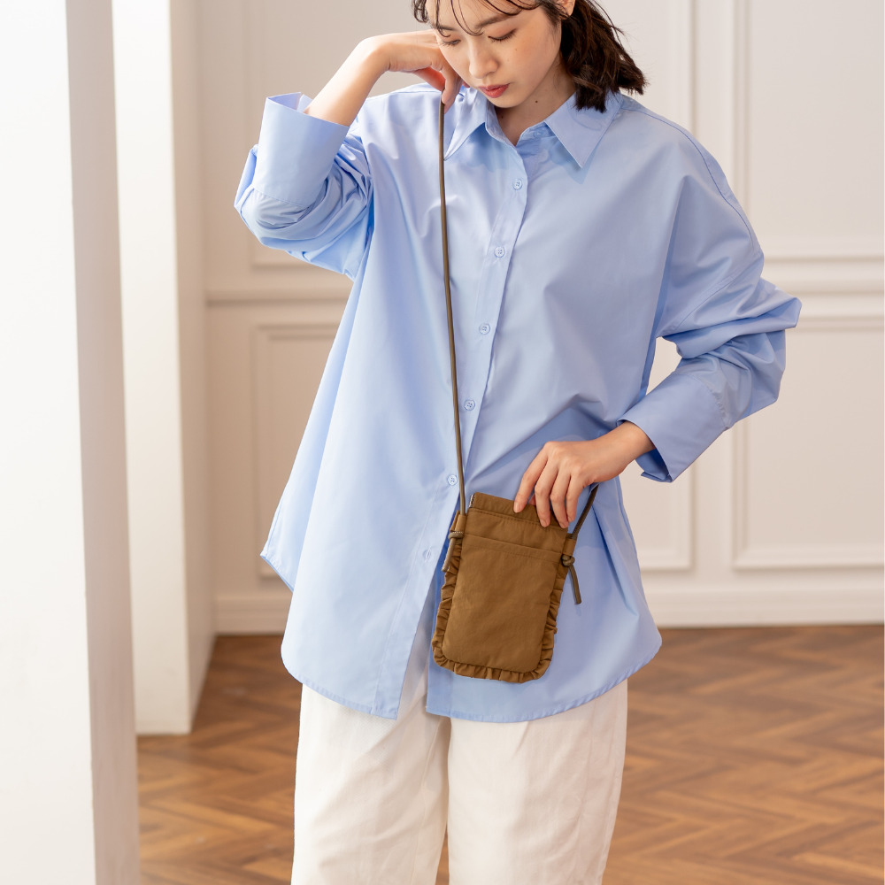 スマホやサングラス、リーディンググラス…手元に置いておきたいけれど、バッグの中を探すのは面倒。そんな悩みを解決してくれるスマートなショルダーポーチです。簡単に開け閉めできるバネ口仕様で、必要なものがすぐに取り出せます。裏面のポケットには、交通系ICカードやリップクリームを忍ばせて、これひとつでお出かけOK。リングカラビナを使えば、いつものバッグのハンドルにもつけられるから、コーディネートの幅も広がります。さりげなくあしらったフリルが、クールなだけではない、ほんのりフェミニンなアクセントに。 ナイロン素材は軽いうえに、摩擦に強く、弾力性があるため、ウェアやバッグ、ポーチなどによく使用されています。水や油、海水や薬品、カビなどに強く、耐久性に優れていることから、手入れのし易さも特徴のひとつです。 >>ファッション