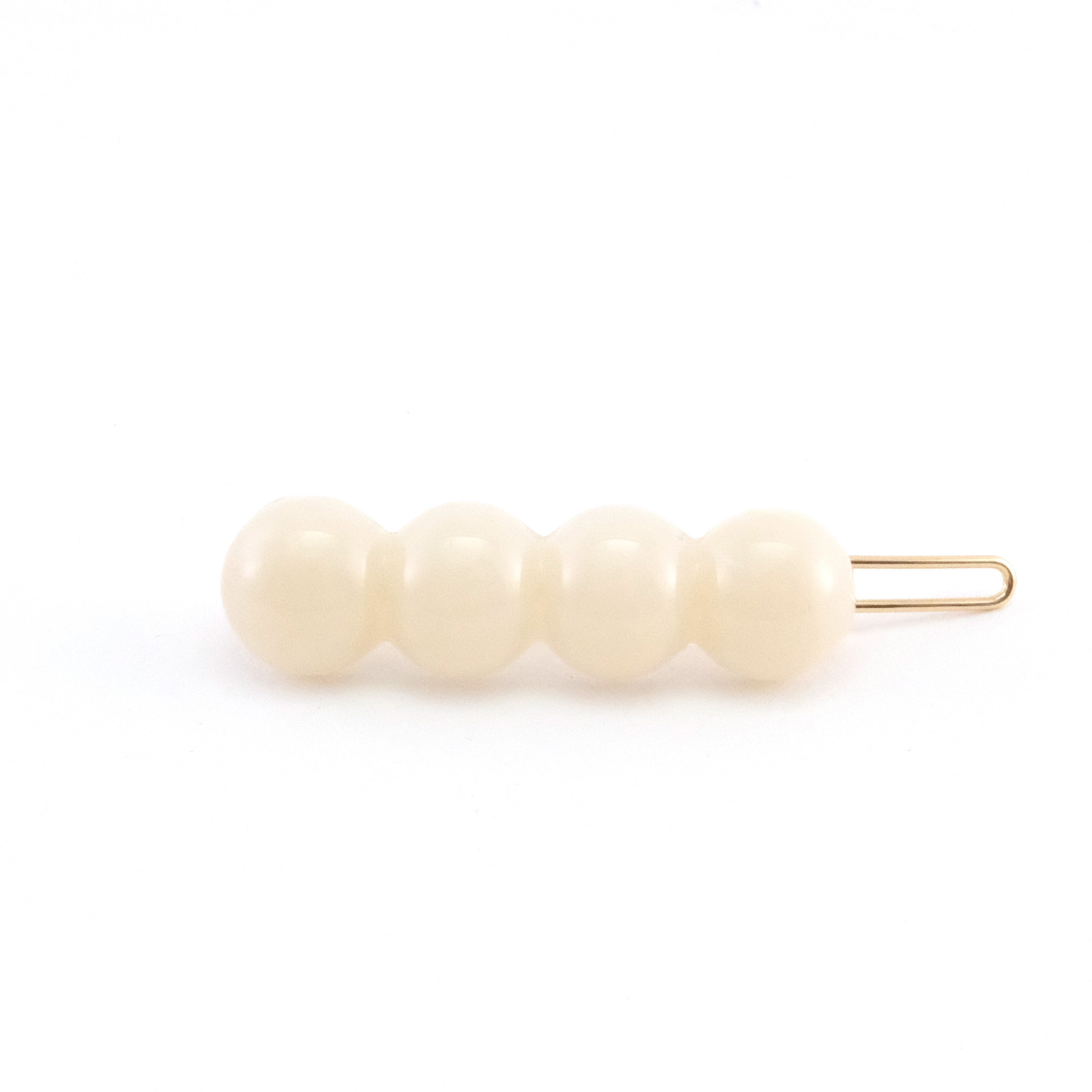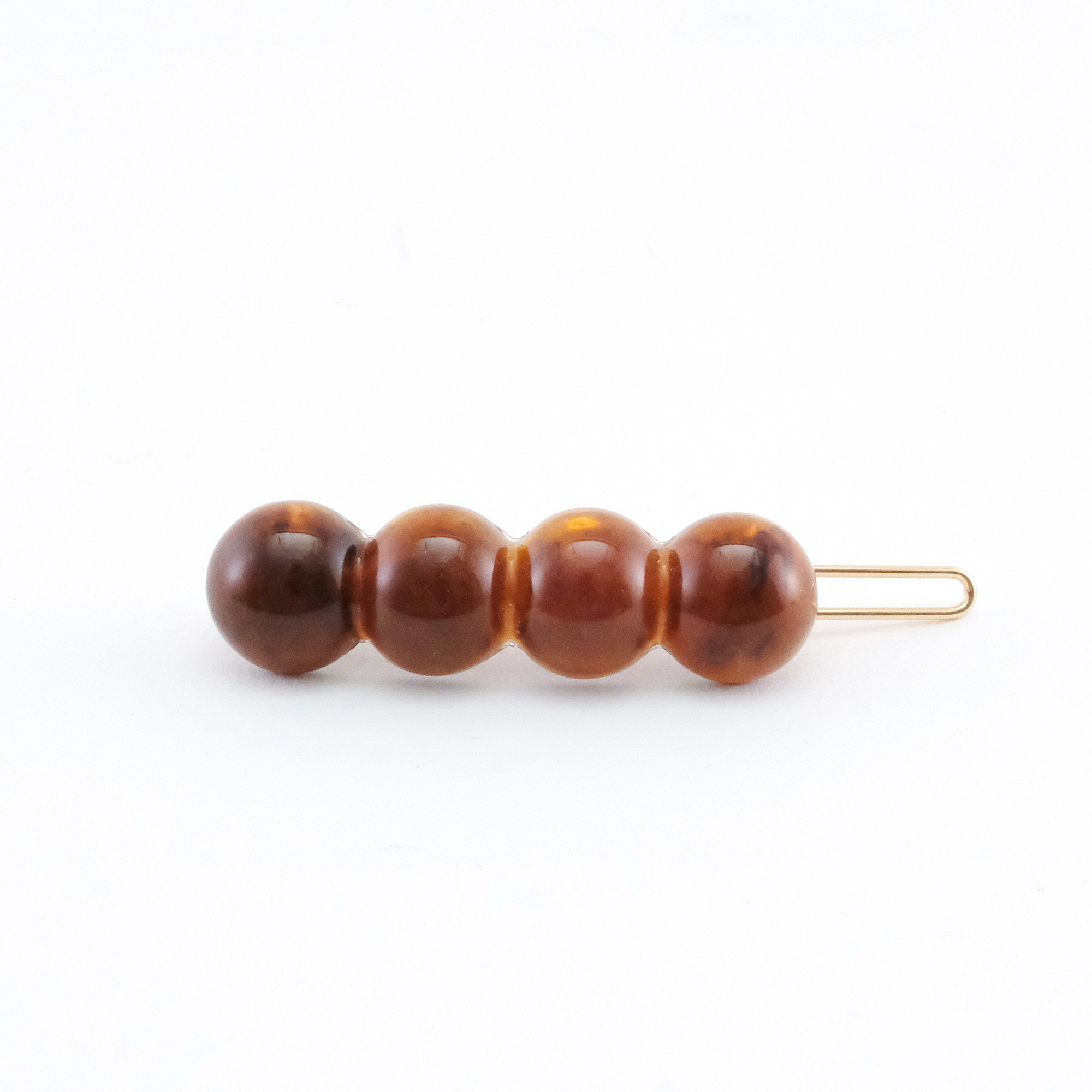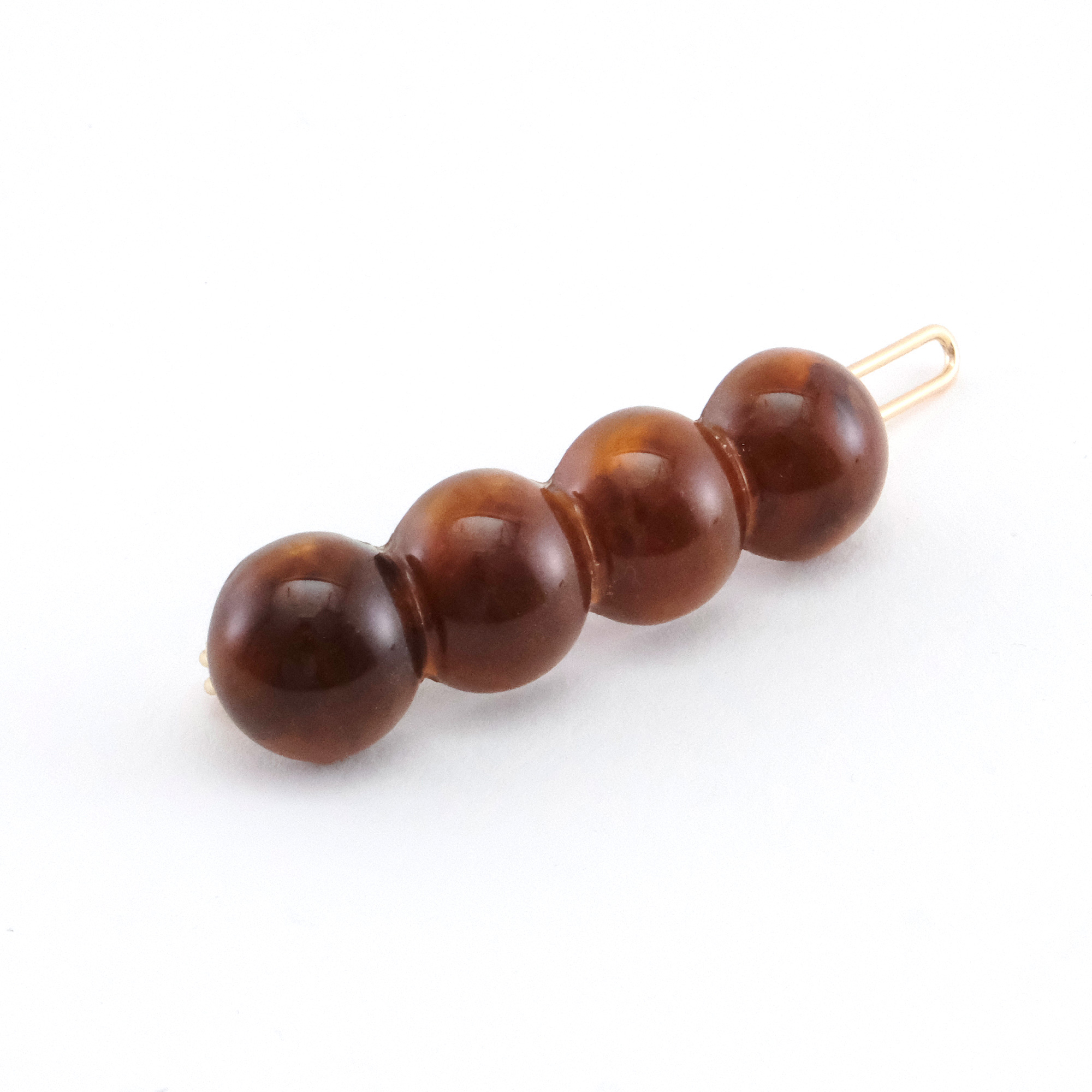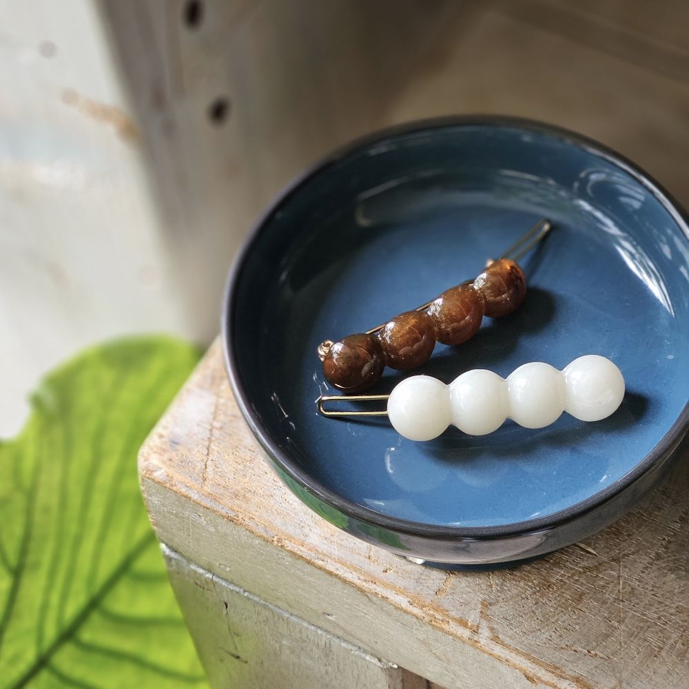 髪を束ねることが多くなる季節に向けて、透け感のある素材で、カジュアルでありながら大人っぽい印象になるヘアピン。素材にはフォーマイカという素材を使用。Formica=フォーマイカは、古くから家具や建築の表面仕上げに使われてきた、丈夫で美しいメラミン樹脂です。耐久性に優れており、キズや摩擦に強く日常使いにも安心な素材です。光の当たり方でわずかな透け感やパールのきらめきが現れ、上品で落ち着いた大人の洗練された表情を演出してくれます。デザインも柔らかい印象を出せるように、少しぷっくりとした丸みを持たせたデザインにして大人カジュアル感を出しました。 フォーマイカは硬く耐久性がある素材なので、日常使いでも傷がつきにくい素材です。金属ほど重くなく、アクリルほどカジュアルにならない素材で、光の当たり方でわずかな透け感やパールのきらめきが現れ、またマーブル調の模様が高級感を演出してくれます。 ドライヤーの熱や直射日光など、高温に長時間さらすと変形や反りの原因になる場合がありますのでご注意ください。硬い素材ですが、落下や強い衝撃で割れたりかけたりすることがありますので、お取り扱いにはご注意ください。