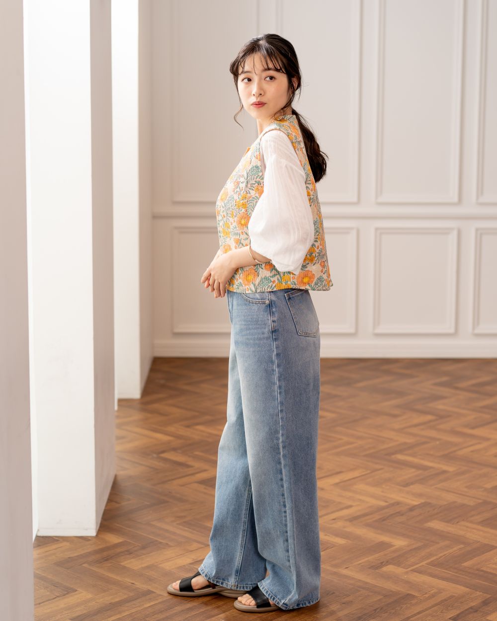 軽やかに春を呼び込む、大人のキルトベスト
