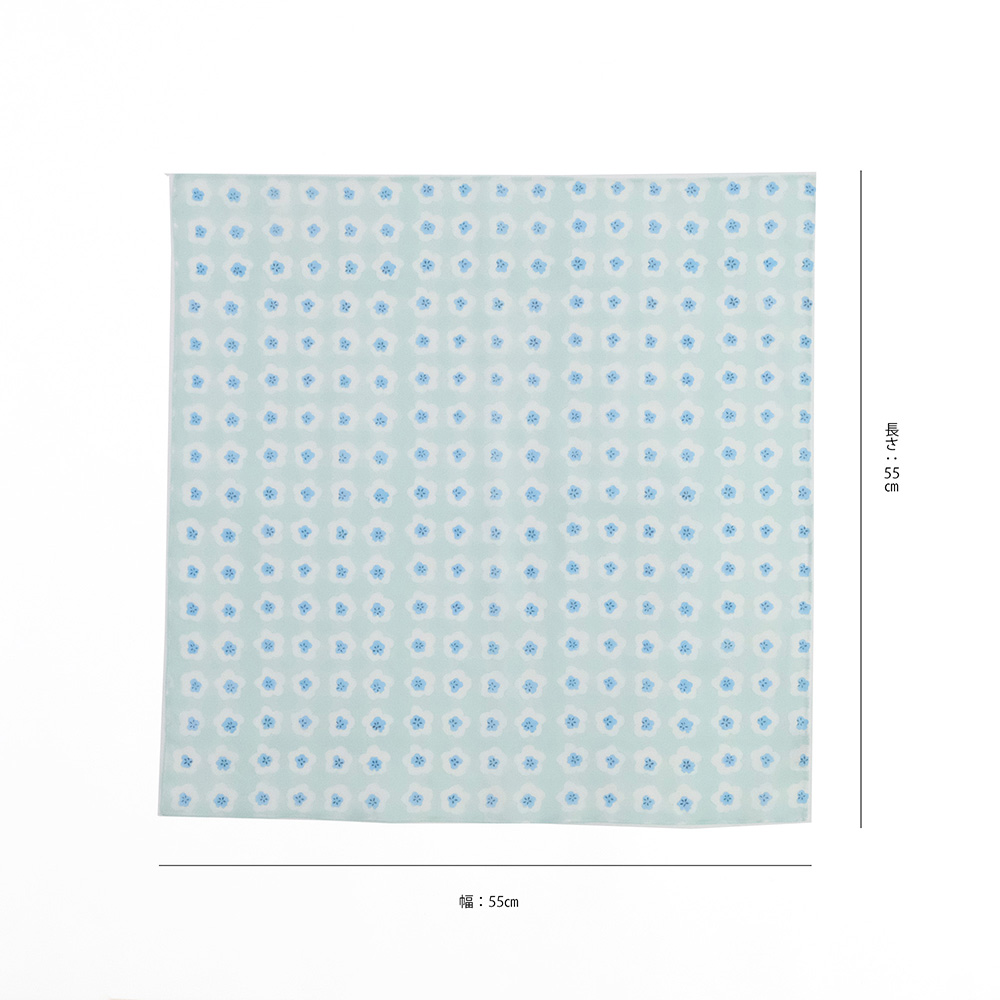 4月中旬?5月上旬頃が見ごろの季節のネモフィラの丘をイメージしたハンカチです。小さな花々が風に揺れる穏やかな光景を、インドの伝統技法「ブロックプリント」で表現しました。職人がひとつひとつ木版を押して描く模様は、わずかな揺らぎや色の重なりが魅力。機械印刷にはない温かみが、ネモフィラの可憐さと自然の豊かさを感じさせてくれます。青く澄んだ花色から、「純粋さ」や「優しさ」をイメージさせる花言葉が多い花で、ギフトにもおすすめの柄です。手に取るたびに、心に広がる青空と花畑の風景をお楽しみください。 ブロックプリントとは、木彫り版でハンコを押すように1柄ずつ1色ずつプリントされたものです。まず、アウトラインとなる柄のスタンプを押していき、その後色を乗せていきます。使われている色の数だけ作業は複雑になっていきます。全て手作業の為、染ムラやスタンプの境目などが少し出ていますが、それがブロックプリントの良さでもあり、風合いとなっております。 >>ファッション雑貨