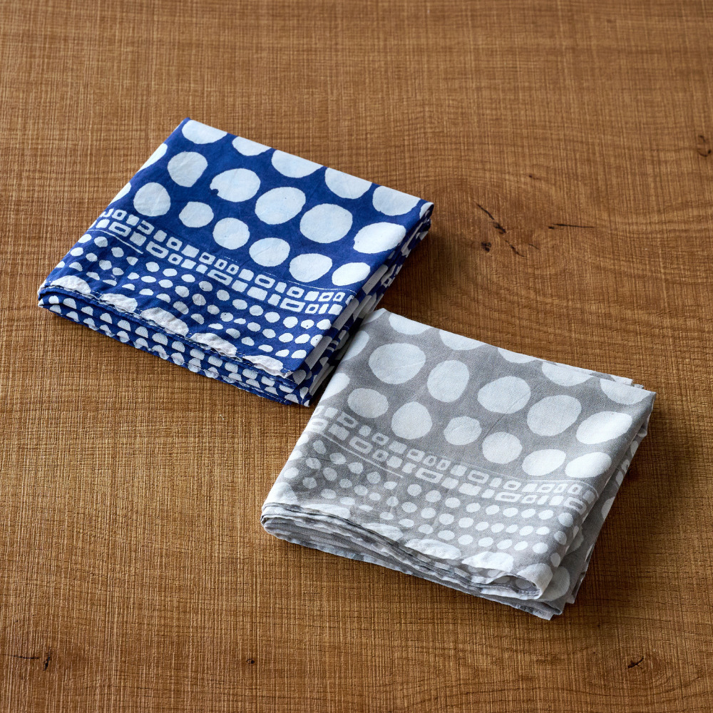 人気のドット柄と、四角のような幾何学モチーフを組み合わせた、カジュアルでありながら落ち着いた印象に仕上げたブロックプリントのハンカチ。ひとつひとつ職人の手で版を押して仕上げられた模様は、手仕事ならではの温かみを感じさせます。落ち着いた色合いでユニセックスに使いやすく、普段使いのハンカチとしてはもちろん、お弁当包みやちょっとしたギフトにもぴったり。落ち着いたトーンの配色はユニセックスでお使いいただける、日常にそっと寄り添う一枚です。 ブロックプリントとは、木彫り版でハンコを押すように1柄ずつ1色ずつプリントされたものです。まず、アウトラインとなる柄のスタンプを押していき、その後色を乗せていきます。使われている色の数だけ作業は複雑になっていきます。全て手作業の為、染ムラやスタンプの境目などが少し出ていますが、それがブロックプリントの良さでもあり、風合いとなっております。 >>ファッション雑貨