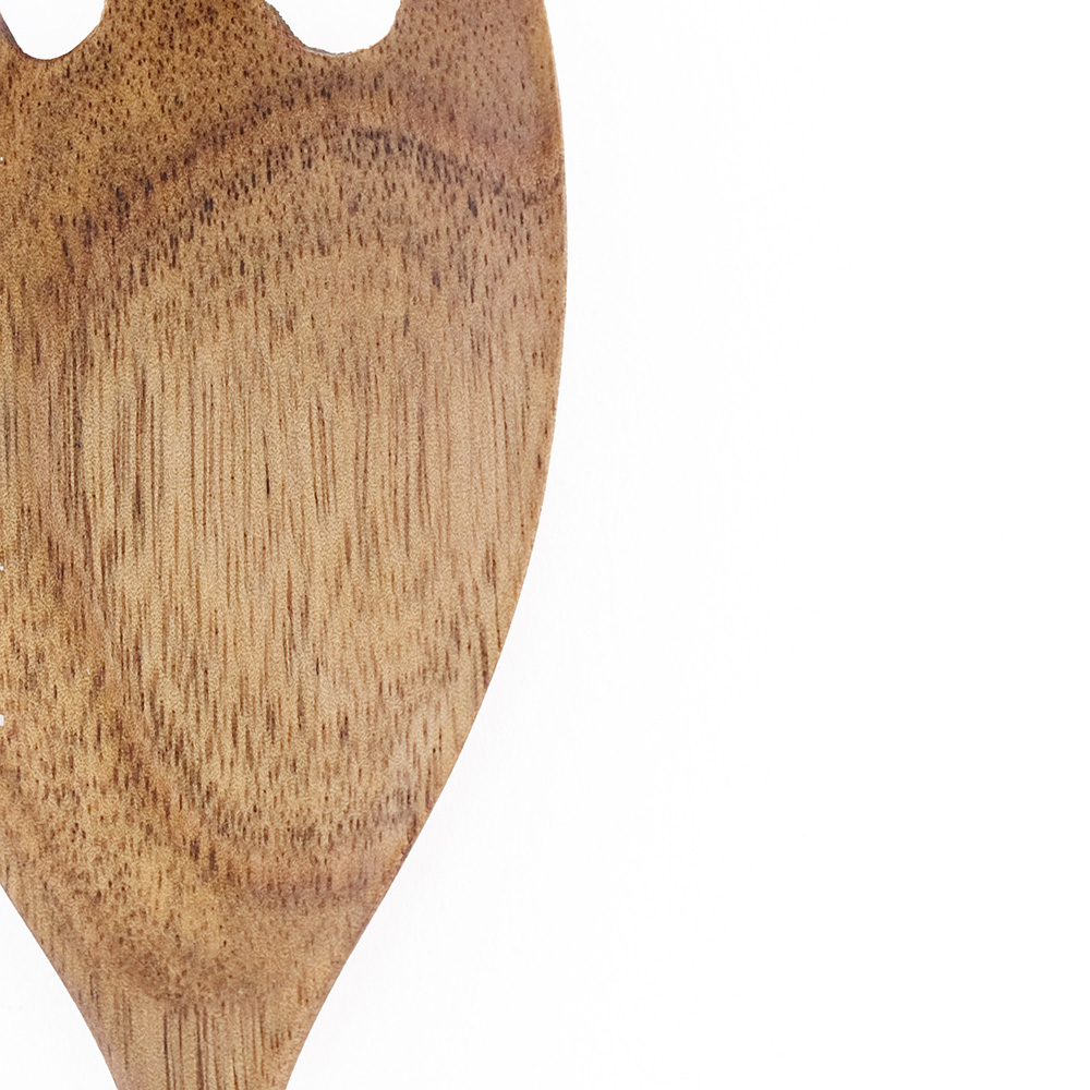 友達を招いた食事会や季節のパーティー。器にはこだわったけれど、取り分け用のサーバーがなくて残念だったことありませんか?せっかく美味しそうに盛り付けたからには道具にもこだりたいものです。大皿料理に添えたり、ポテトサラダなどの取り分けにぴったりなアカシアの先割れサービングスプーンは、使い込むことで味わい深い風合いに変化していきます。デザイン違いのサーブスプーンとセットで使うのがおススメです。お気に入りの道具が見つかれば、日々の暮らしも楽しく豊かになるはずです。 ACACIA WOODは中心部が濃い茶色で周辺部は白色と、濃淡の差がはっきりとしています。これらを木材そのものの特徴として捉え、原材料を無駄なく使い、限りある資源を大切にしたいと考えています。また、手作りのため商品のサイズや形状にも多少の誤差があります。素材そのものが持つ個体差や、大量生産にはないそれぞれの表情をお楽しみください。
