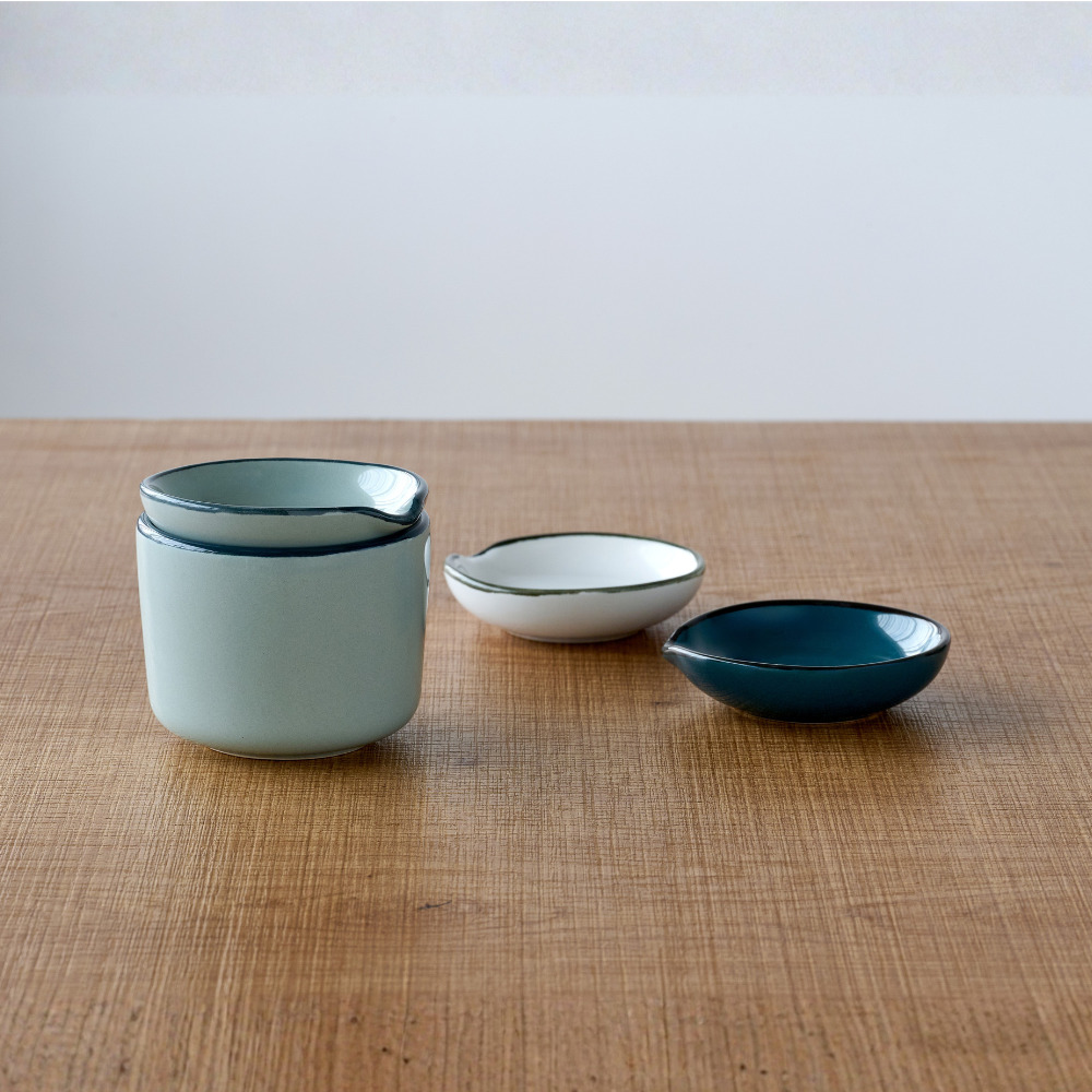 日常になじむシンプルなかたちに、濃いめのラインをアクセントに加えたどんなお料理にも寄り添ってくれる器です。縁に沿ってカーブがついていて、カトラリーを受け止める便利な作りで使いやすさにもこだわりました。調味料を置くのにちょうどいいサイズの豆皿。同じシリーズのミニカップの上に重ねることができ、蕎麦猪口と薬味入れのように、お料理の用途に合わせてセットでお楽しみいただけます。他にも同じシリーズの食器と組み合わせれば、統一感のあるおしゃれなテーブルコーディネートを演出します。紙の風合いを大切にしたデザインBOX入りで、贈り物にもぴったりです。 ■シリーズ商品(形違い)はこちら 半磁器(ストーンウェア)とは、素焼きのようなマットで素朴なテクスチャが特徴で、陶器の柔らかくあたたかみのある印象はそのままに、磁器よりも耐久性が高く、割れにくい素材です。 >>食器・キッチン