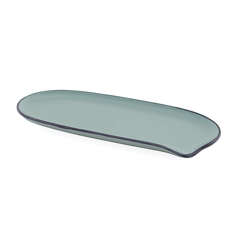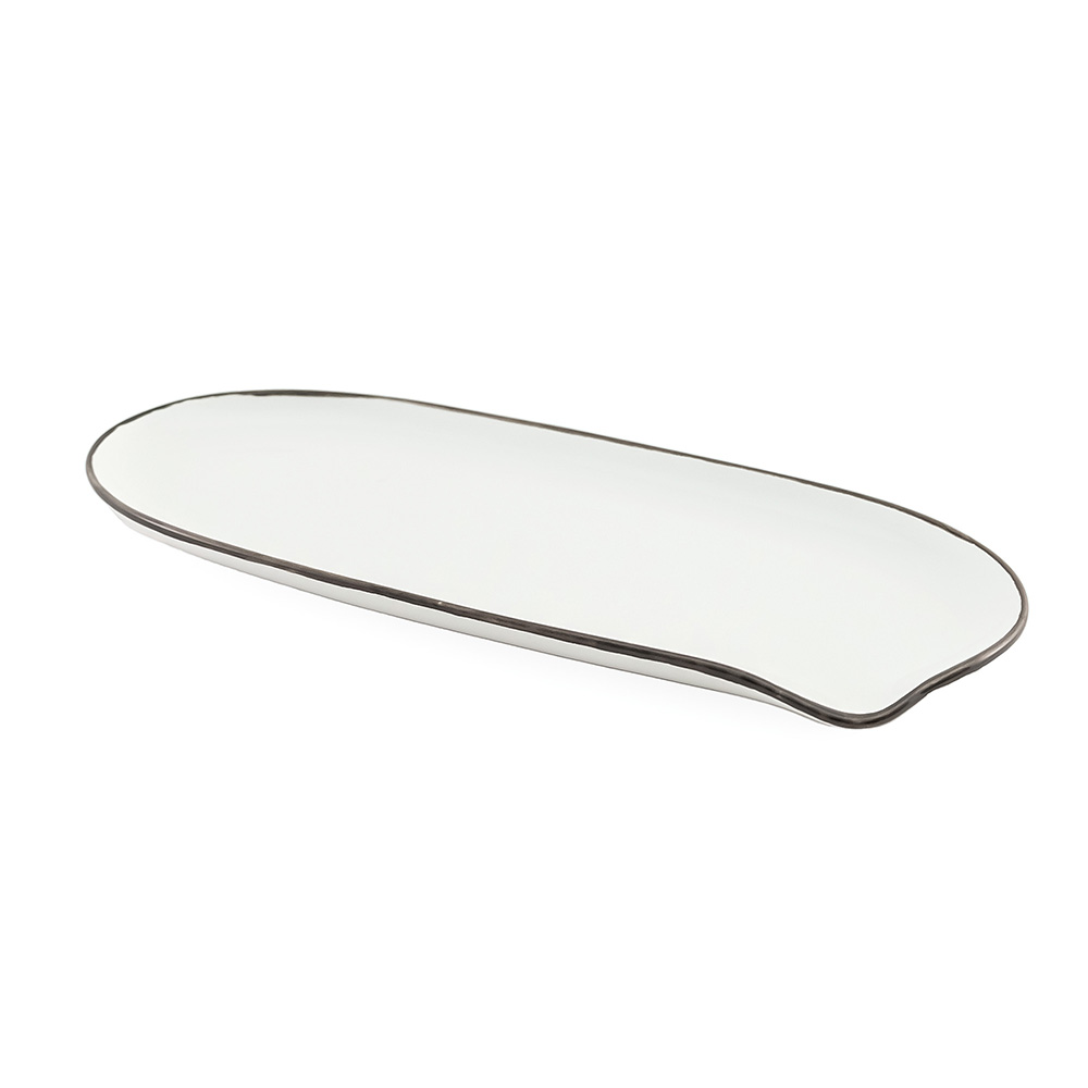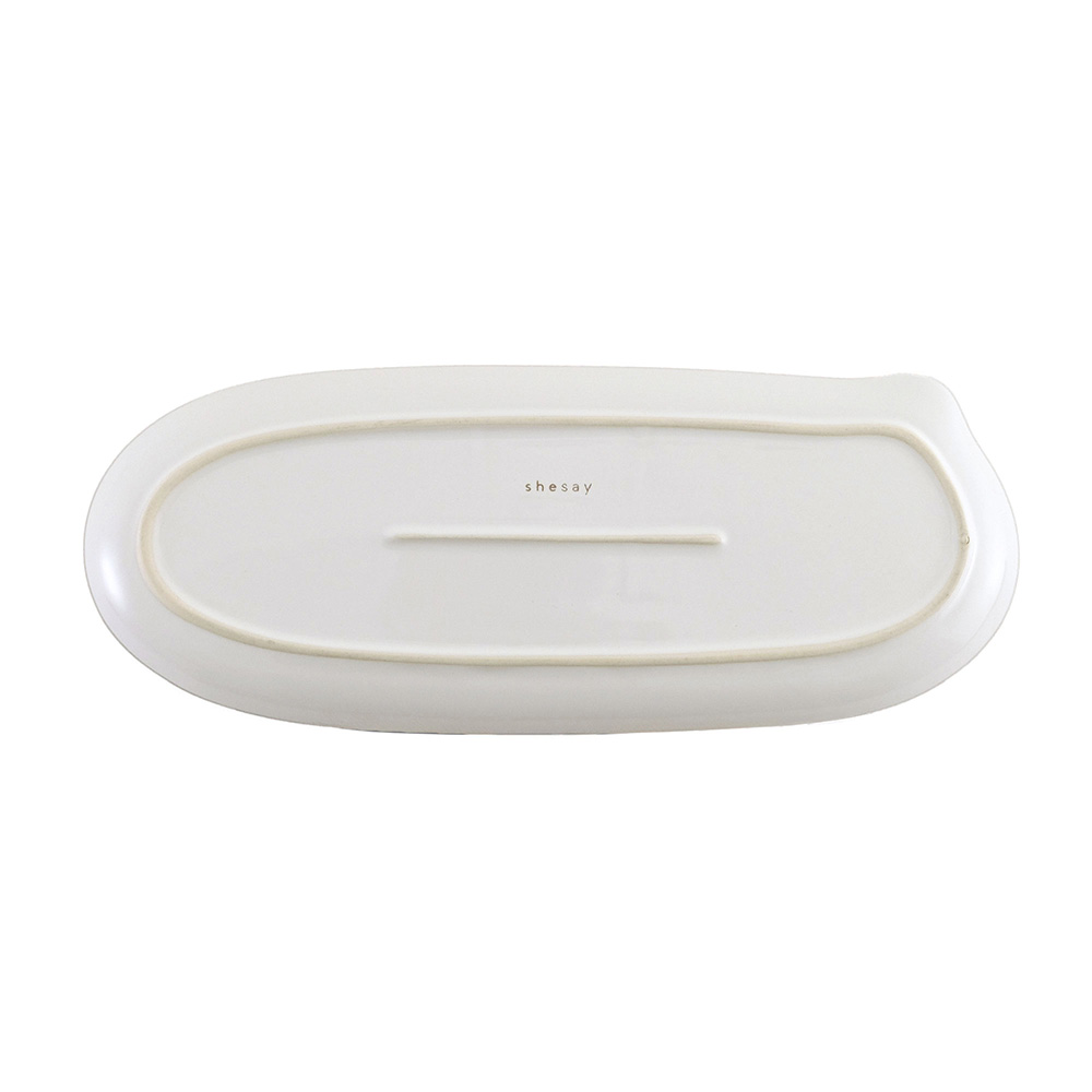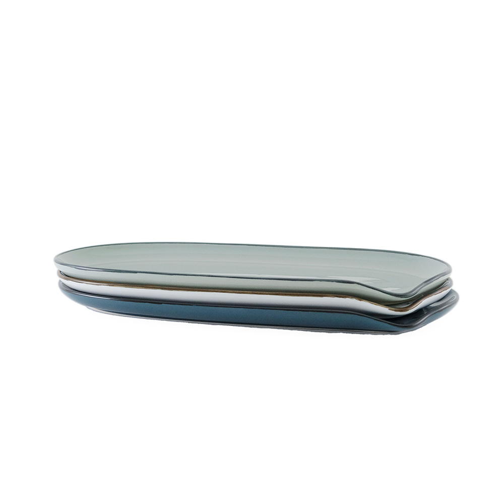 日常になじむシンプルなかたちに、濃いめのラインをアクセントに加えたどんなお料理にも寄り添ってくれる器です。縁に沿ってカーブがついていて、カトラリーを受け止める便利な作りで使いやすさにもこだわりました。アラカルトやタパスなどの取り分け料理にちょうど良い、少し大きめサイズのロングプレート。 同じシリーズの食器と組み合わせれば、統一感のあるおしゃれなテーブルコーディネートを楽しめます。紙の風合いを大切にしたデザインBOX入りで、贈り物にもぴったりです。 ■シリーズ商品(形違い)はこちら 半磁器(ストーンウェア)とは、素焼きのようなマットで素朴なテクスチャが特徴で、陶器の柔らかくあたたかみのある印象はそのままに、磁器よりも耐久性が高く、割れにくい素材です。 >>食器・キッチン