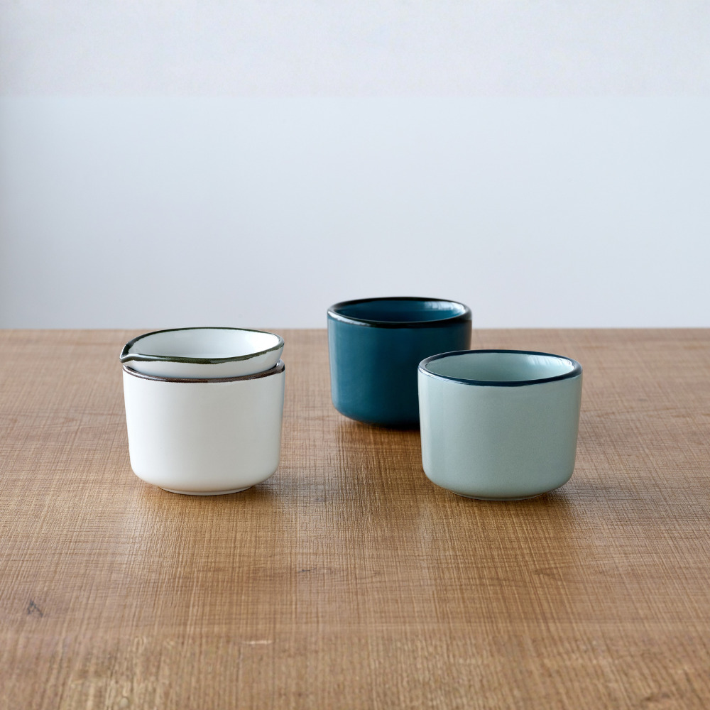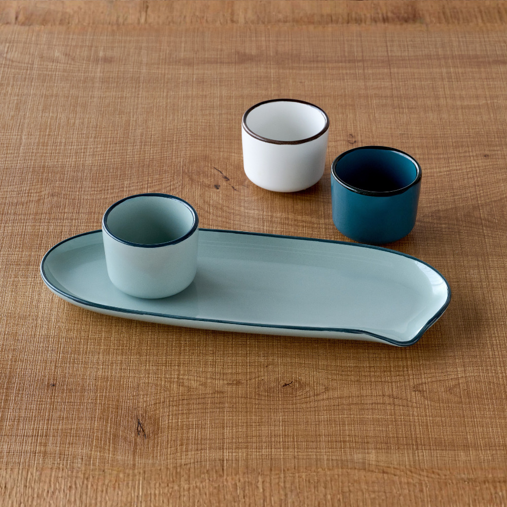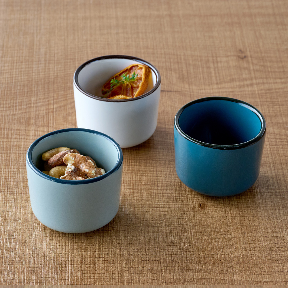 日常になじむシンプルなかたちに、濃いめのラインをアクセントに加えたどんなお料理にも寄り添ってくれる器です。すこし小ぶりなサイズ感で、ちょこんとお料理をのせると上質さを演出してくれます。一品料理にちょうど良い、底が深めのミニカップ。同じシリーズの豆皿を蓋として重ねることができ、蕎麦猪口と薬味入れのように、お料理の用途に合わせてセットでもお楽しみいただけます。他にも同じシリーズの食器と組み合わせれば、統一感のあるおしゃれなテーブルコーディネートを演出します。紙の風合いを大切にしたデザインBOX入りで、贈り物にもぴったりです。 ■シリーズ商品(形違い)はこちら 半磁器(ストーンウェア)とは、素焼きのようなマットで素朴なテクスチャが特徴で、陶器の柔らかくあたたかみのある印象はそのままに、磁器よりも耐久性が高く、割れにくい素材です。 >>食器・キッチン