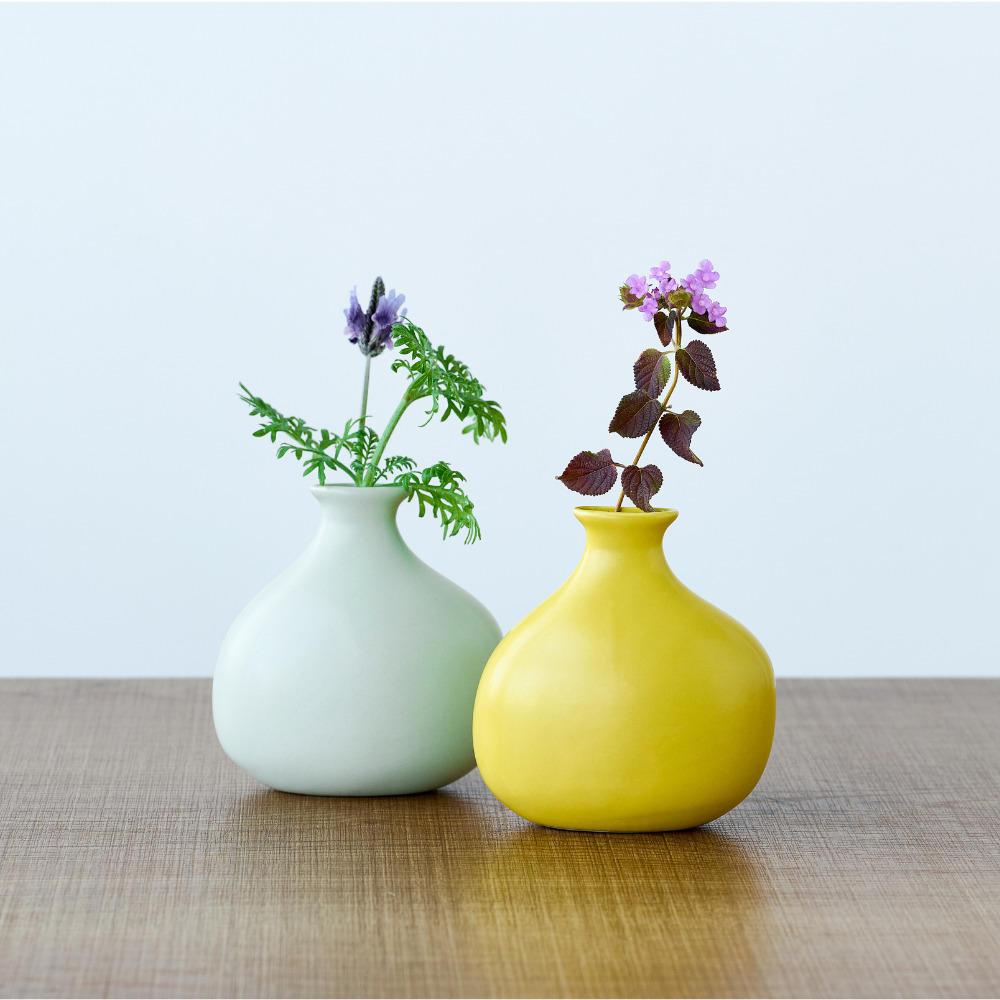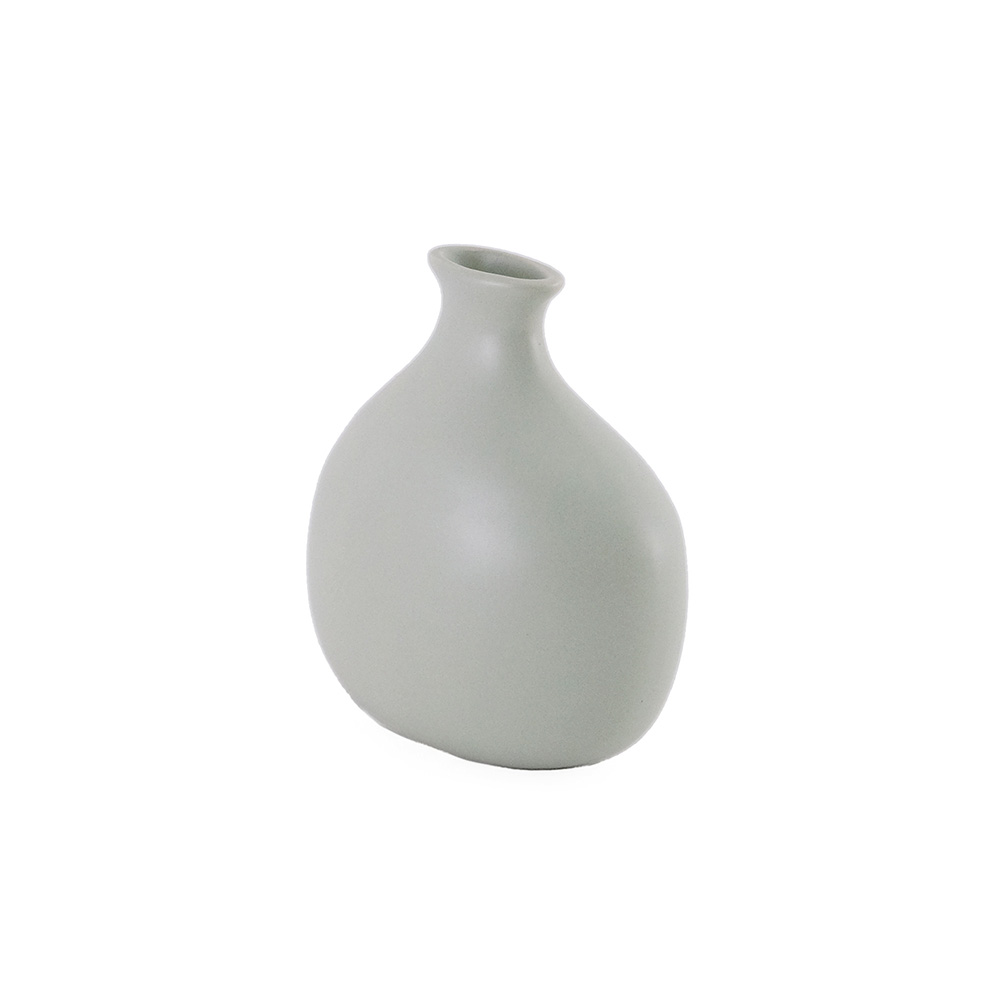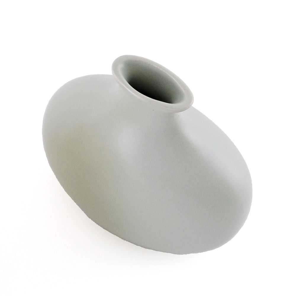 ガラス花瓶とはひと味違う、やわらかな表情を楽しめる半磁器のフラワーベースが新登場。半磁器ならではのマットで穏やかな質感が光をやさしく受けとめ、草花の色や姿を美しく引き立てます。形は、一般的な円柱型ではなく、横から見ると少し平らなシルエットにデザイン。奥行きの浅い棚や玄関、テレビボードの上など、限られたスペースにも飾りやすいサイズに仕上げています。ひとつだけでも存在感がありますが、高さや形の異なる数種類を組み合わせて飾ると、リズムが生まれ、空間に奥行きが生まれるのも魅力。左右非対称のフォルムにより、向きを変えるたびに違う表情が現れるため、植物を挿さないときでもオブジェのように楽しめる佇まいです。 ■シリーズ商品(形違い)はこちら 半磁器(ストーンウェア)とは、素焼きのようなマットで素朴なテクスチャが特徴で、陶器の柔らかくあたたかみのある印象はそのままに、磁器よりも耐久性が高く、割れにくい素材です。 >>インテリアグリーン・ガーデン