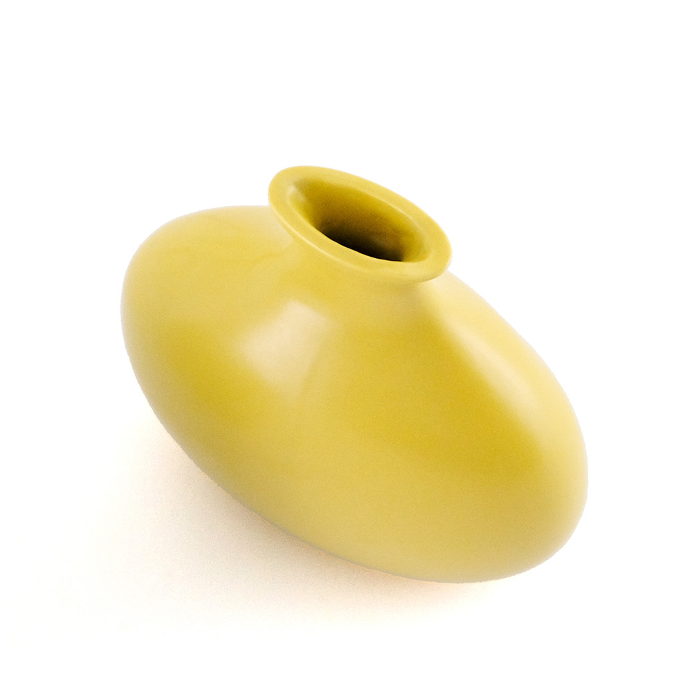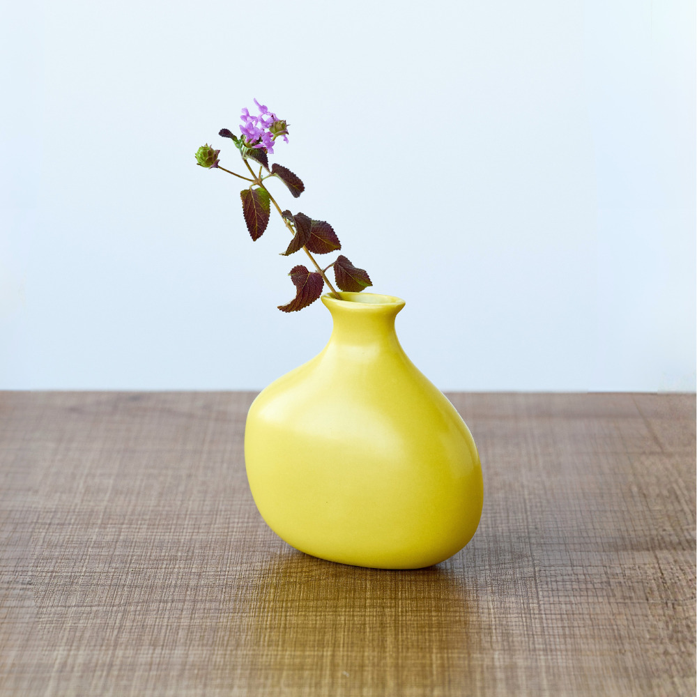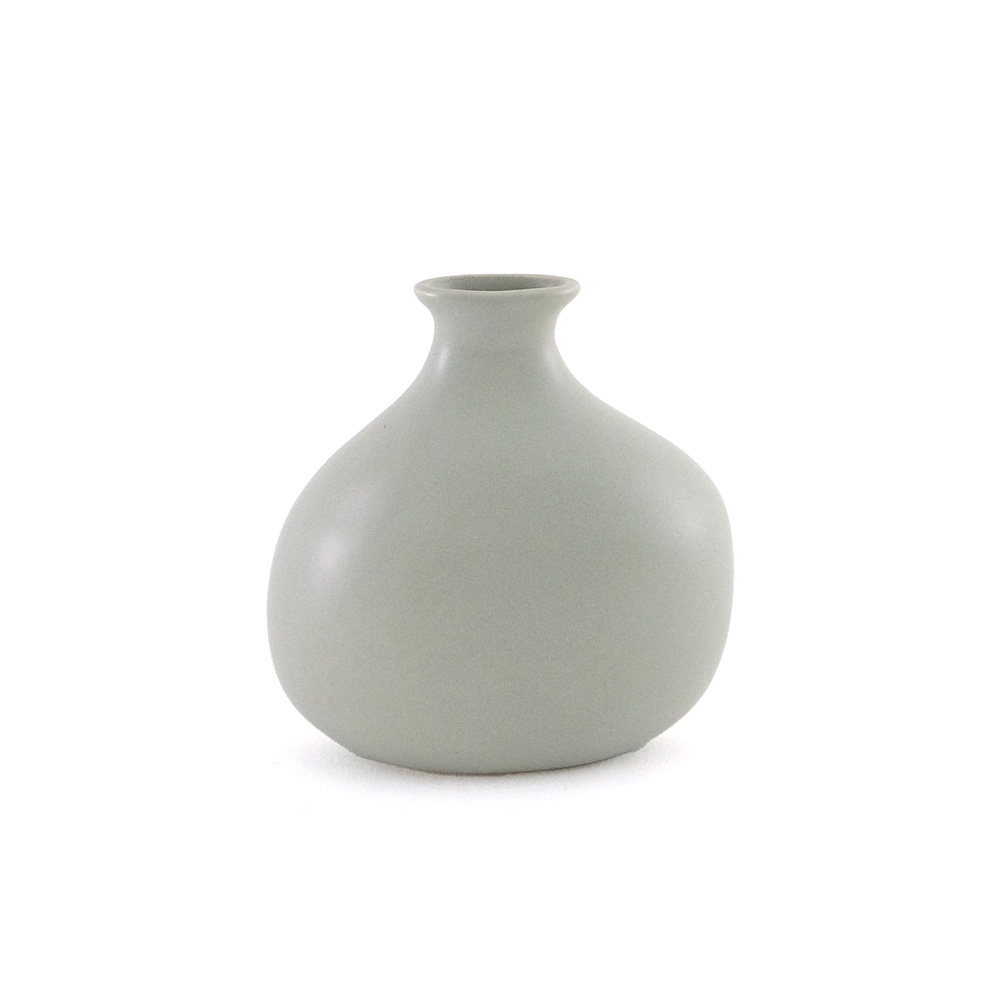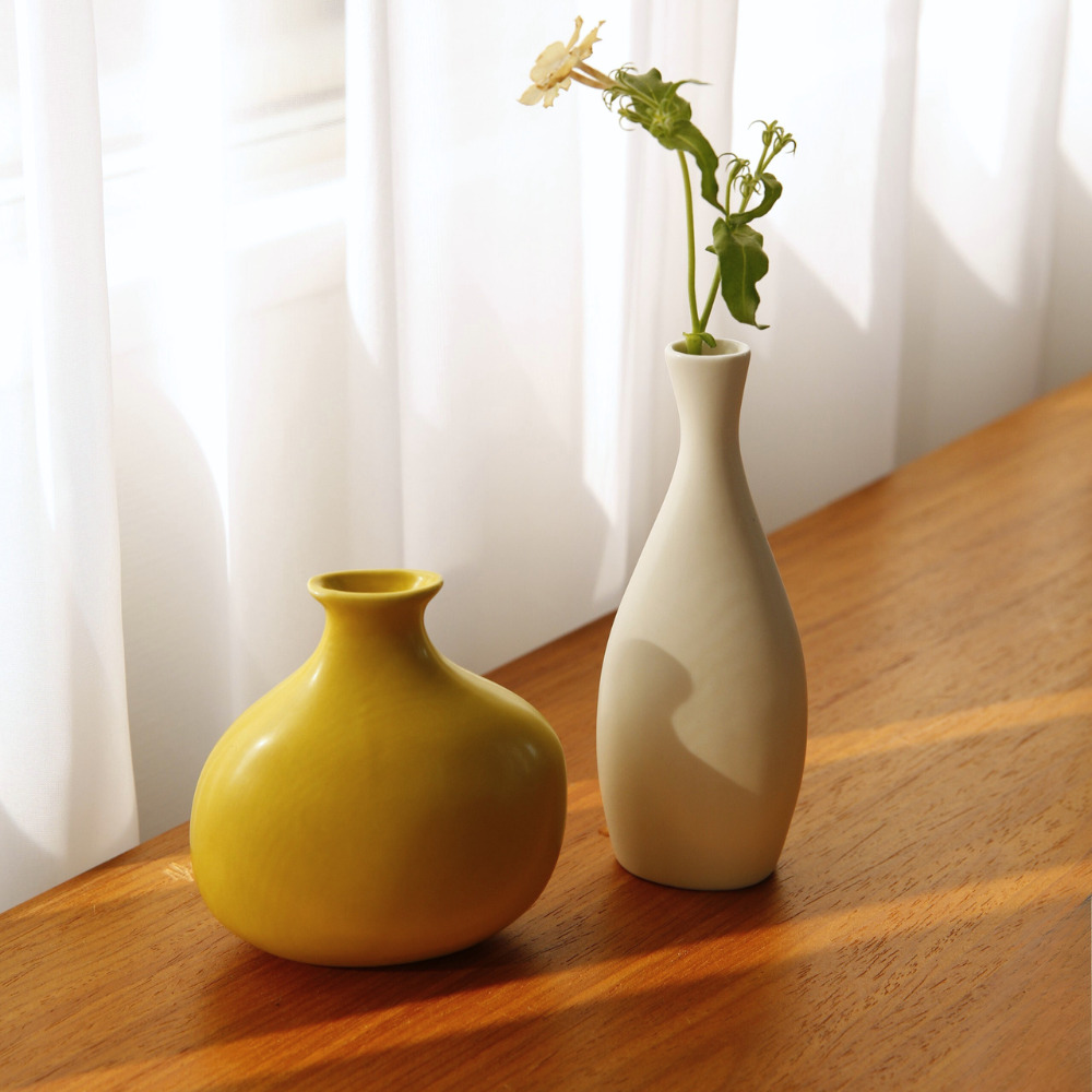 ガラス花瓶とはひと味違う、やわらかな表情を楽しめる半磁器のフラワーベースが新登場。半磁器ならではのマットで穏やかな質感が光をやさしく受けとめ、草花の色や姿を美しく引き立てます。形は、一般的な円柱型ではなく、横から見ると少し平らなシルエットにデザイン。奥行きの浅い棚や玄関、テレビボードの上など、限られたスペースにも飾りやすいサイズに仕上げています。ひとつだけでも存在感がありますが、高さや形の異なる数種類を組み合わせて飾ると、リズムが生まれ、空間に奥行きが生まれるのも魅力。左右非対称のフォルムにより、向きを変えるたびに違う表情が現れるため、植物を挿さないときでもオブジェのように楽しめる佇まいです。 ■シリーズ商品(形違い)はこちら 半磁器(ストーンウェア)とは、素焼きのようなマットで素朴なテクスチャが特徴で、陶器の柔らかくあたたかみのある印象はそのままに、磁器よりも耐久性が高く、割れにくい素材です。 >>インテリアグリーン・ガーデン