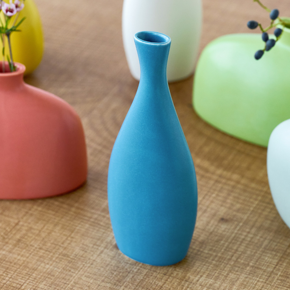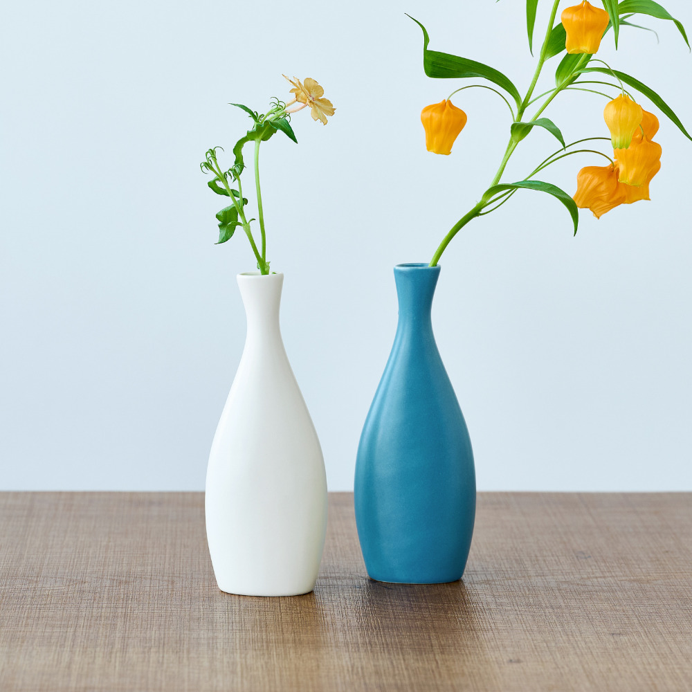 ガラス花瓶とはひと味違う、やわらかな表情を楽しめる半磁器のフラワーベースが新登場。半磁器ならではのマットで穏やかな質感が光をやさしく受けとめ、草花の色や姿を美しく引き立てます。形は、一般的な円柱型ではなく、横から見ると少し平らなシルエットにデザイン。奥行きの浅い棚や玄関、テレビボードの上など、限られたスペースにも飾りやすいサイズに仕上げています。ひとつだけでも存在感がありますが、高さや形の異なる数種類を組み合わせて飾ると、リズムが生まれ、空間に奥行きが生まれるのも魅力。左右非対称のフォルムにより、向きを変えるたびに違う表情が現れるため、植物を挿さないときでもオブジェのように楽しめる佇まいです。 半磁器(ストーンウェア)とは、素焼きのようなマットで素朴なテクスチャが特徴で、陶器の柔らかくあたたかみのある印象はそのままに、磁器よりも耐久性が高く、割れにくい素材です。 ■シリーズ商品(形違い)はこちら >>インテリアグリーン・ガーデン