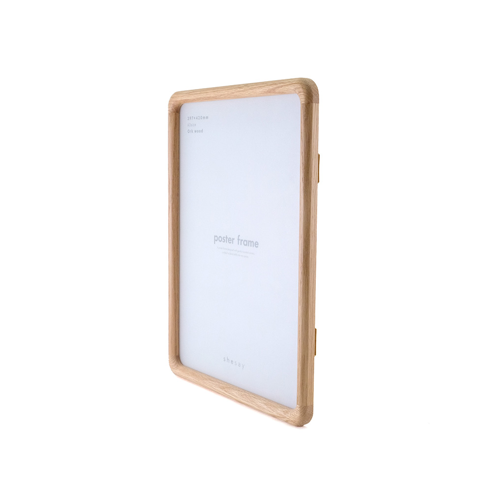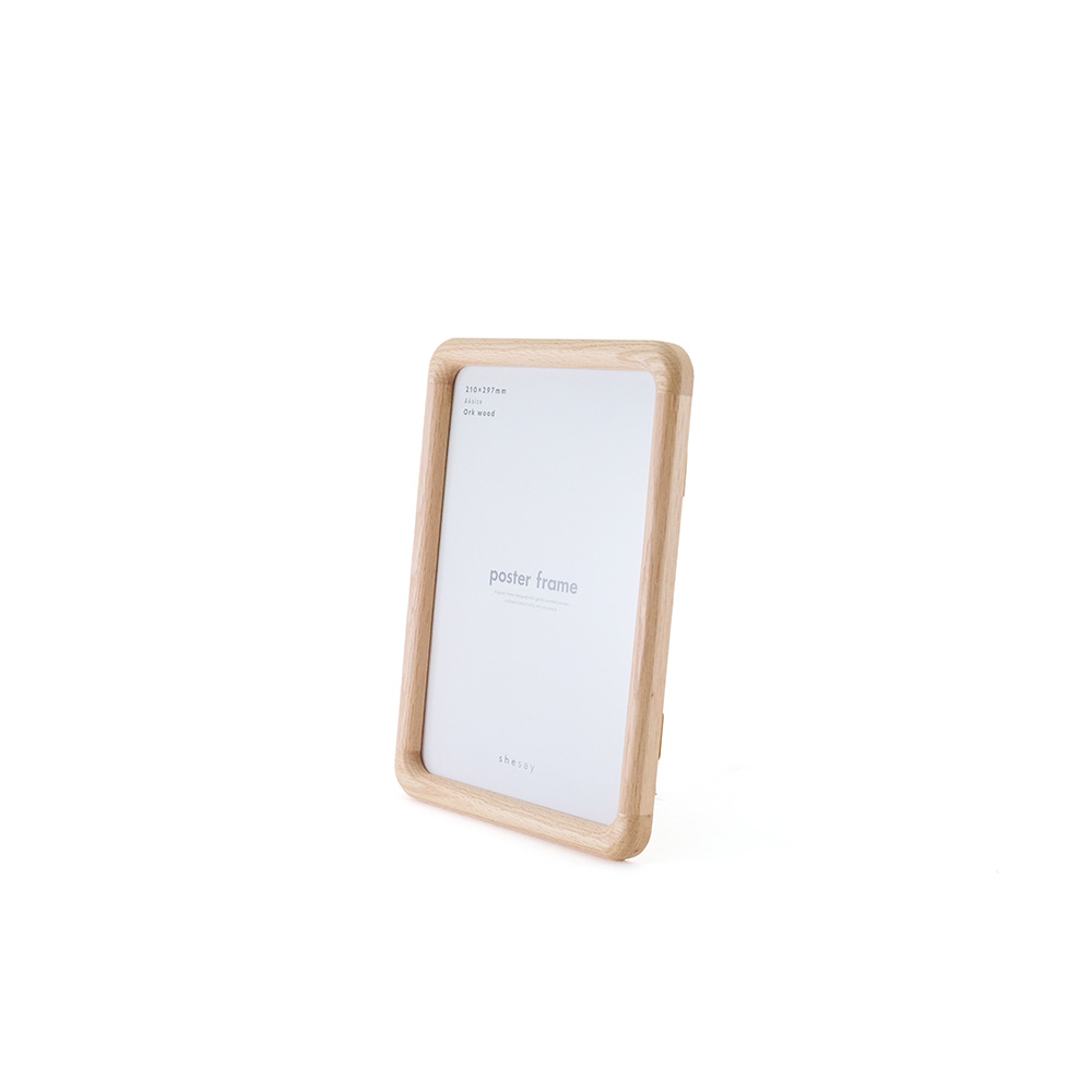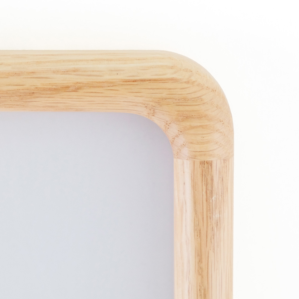 どんな空間にも柔らかく溶け込むようにデザインされた、角に優しい丸みをもたせたポスターフレーム。北欧家具にも多く使われるオーク材を使用しており、美しい木目と自然な表情が魅力です。軽量で扱いやすく、掛け替えの際も安心してお使いいただけます。縦横どちらの向きでも飾ることができ、A4サイズのポスターにちょうど良いサイズです。 オーク材は耐久性があり、固く丈夫なため高級家具によく使用されています。耐水性にも優れており害虫にも強いという特徴があります。美しい木目が特徴で、虎斑と呼ばれる特有の木目もオーク材ならではの魅力です。 >>インテリア雑貨
