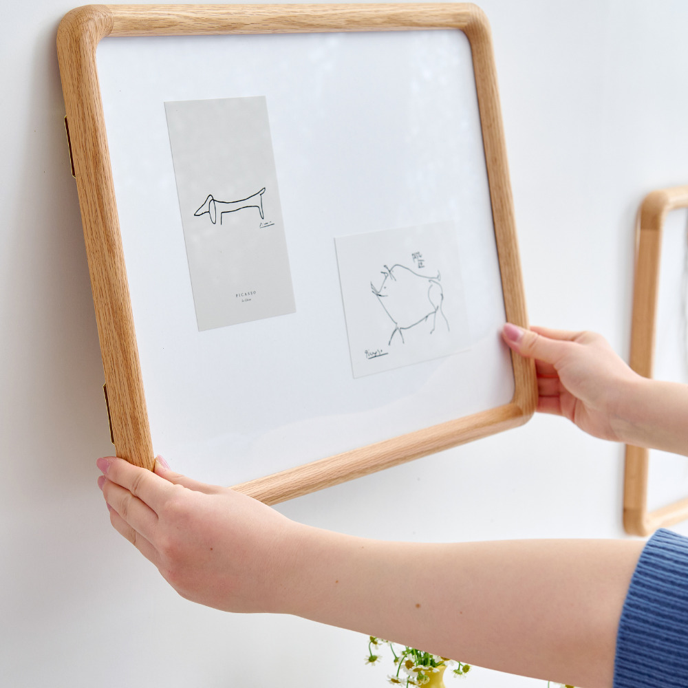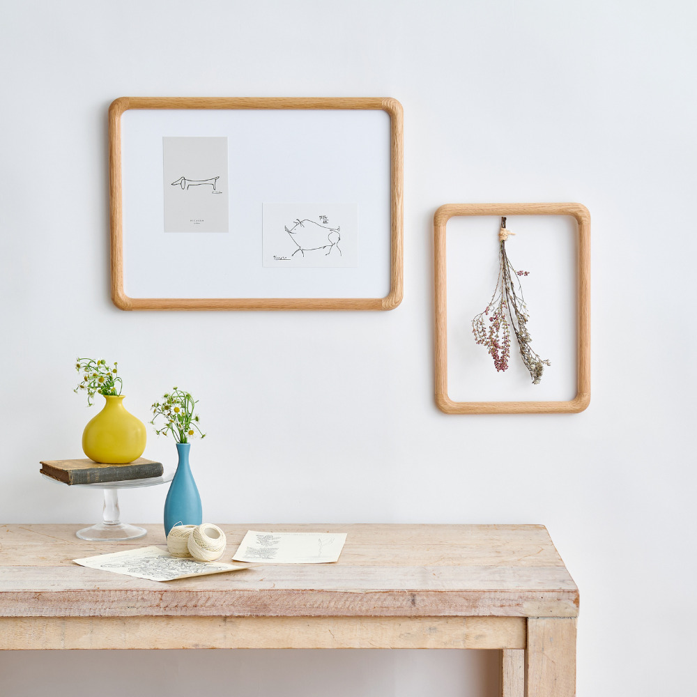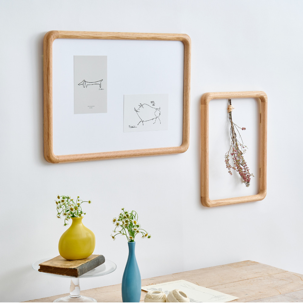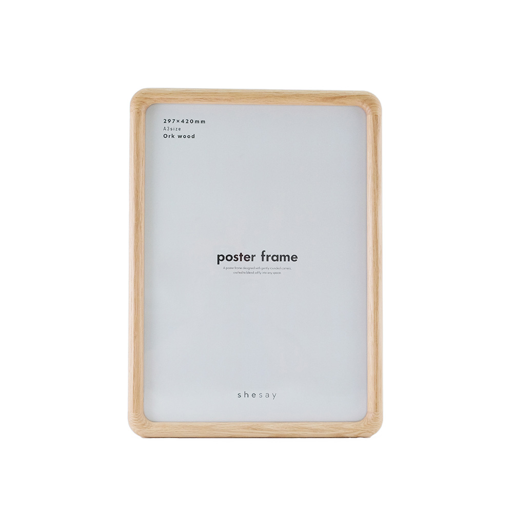 どんな空間にも柔らかく溶け込むようにデザインされた、角に優しい丸みをもたせたポスターフレーム。北欧家具にも多く使われるオーク材を使用しており、美しい木目と自然な表情が魅力です。軽量で扱いやすく、掛け替えの際も安心してお使いいただけます。縦横どちらの向きでも飾ることができ、A4サイズのポスターにちょうど良いサイズです。 オーク材は耐久性があり、固く丈夫なため高級家具によく使用されています。耐水性にも優れており害虫にも強いという特徴があります。美しい木目が特徴で、虎斑と呼ばれる特有の木目もオーク材ならではの魅力です。 >>インテリア雑貨