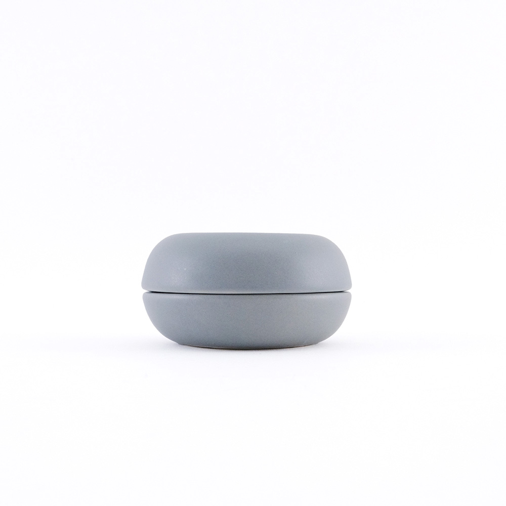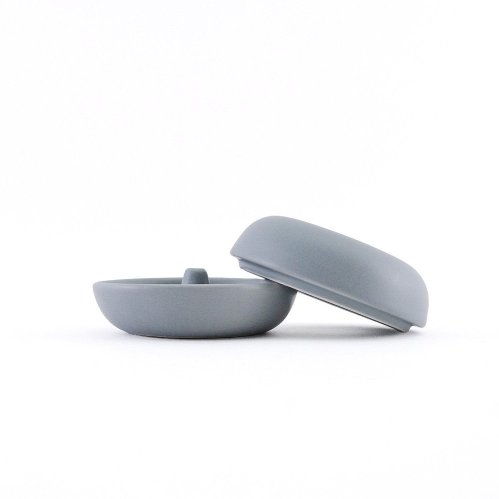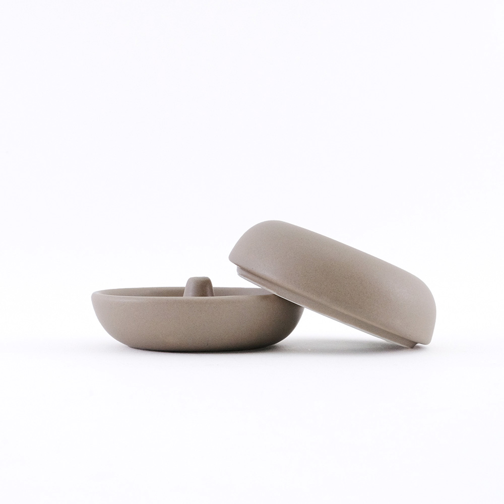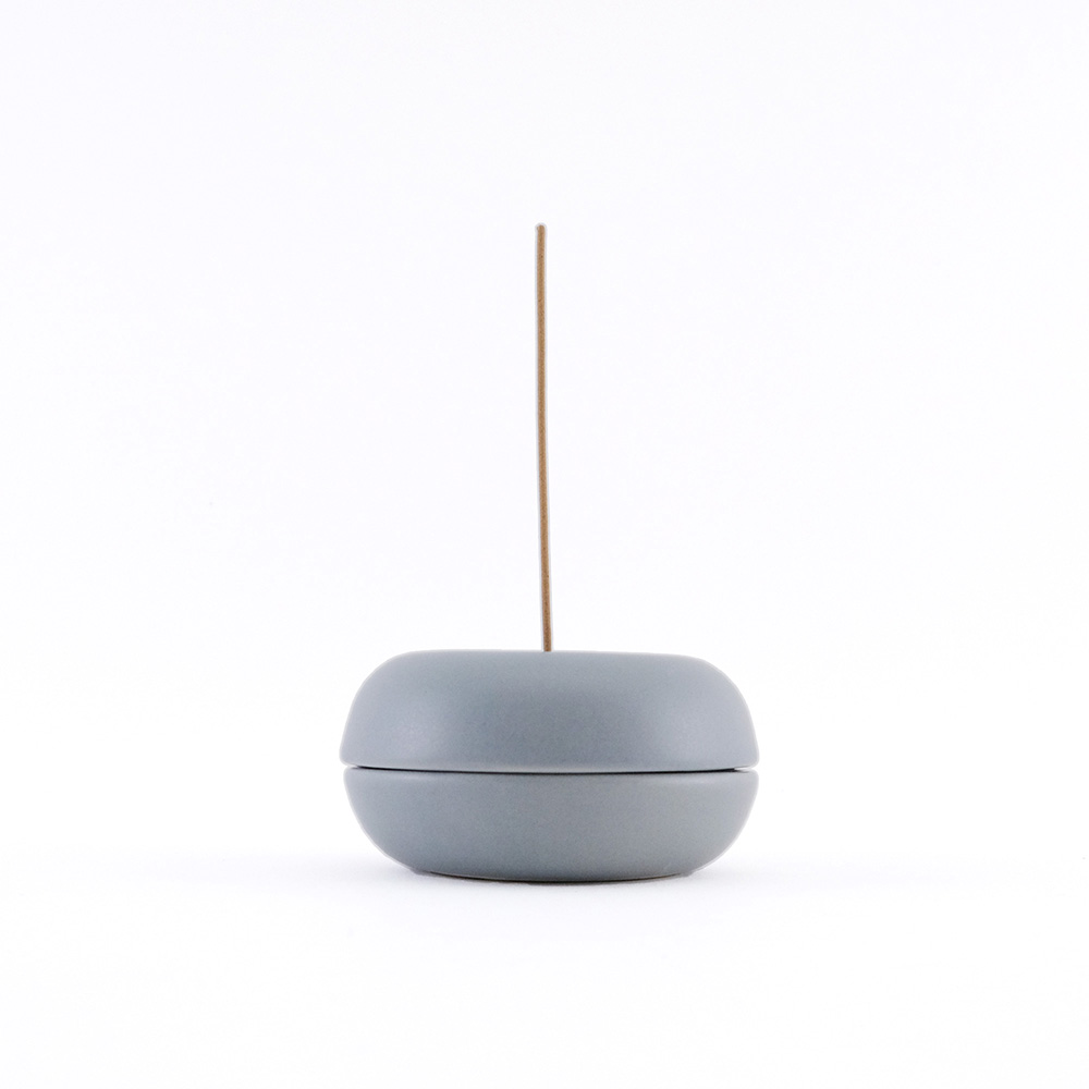 まるでベーグルの様なまるまるとしたフォルムが個性的なお香立て。落ちた灰が内側にたまる構造のため、外から見えにくく、まとめて捨てられるのでお手入れも簡単です。お香のある生活を、より気軽に楽しんでいただけます。蓋を外してすっきりとした見た目でも使えるので、気分で使い分けてお楽しみください。 半磁器(ストーンウェア)とは、素焼きのようなマットで素朴なテクスチャが特徴で、陶器の柔らかくあたたかみのある印象はそのままに、磁器よりも耐久性が高く、割れにくい素材です。