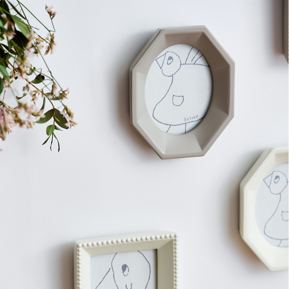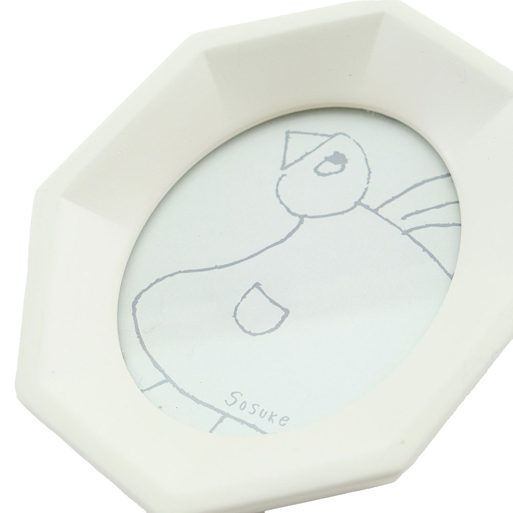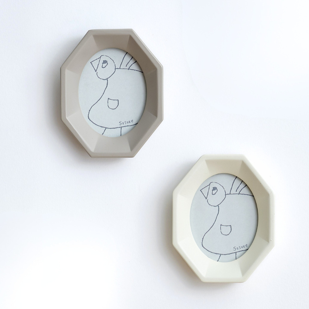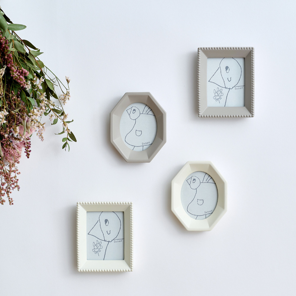 「空間の余韻も楽しめる 小さなフォトフレーム」は、レジン素材でつくった、小さくても存在感のあるフォトフレームです。インテリアに馴染む落ち着いた色合いで、玄関・リビング・飾り棚など、どんな空間にも自然と寄り添います。フレームに入っているイラストは、shesayで人気のモチーフ「鳥」をテーマに、スタッフの子どもたちが自由な発想で描いたものを採用。子どもならではの伸びやかなタッチが、飾る空間にやさしく楽しい雰囲気を添えます。そのままアートとして飾っていただくのはもちろん、道で拾った草花や押し花、旅の思い出の紙片などを入れてアレンジすることもできます。複数並べて飾ればリズムが生まれ、小さなスペースにも心がほっと和む時間が生まれます。 ■同じシリーズのレクタングルはこちら レジンは、硬く丈夫なプラスチックのような特性を持つ合成樹脂です。硬くて丈夫なので耐久性のある素材です。アクセサリーやインテリア、模型など様々な用途に用いられます。 >>インテリア雑貨