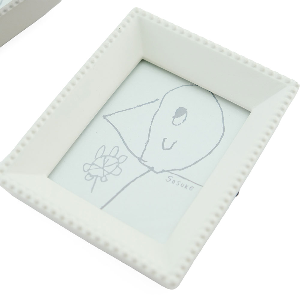 「空間の余韻も楽しめる 小さなフォトフレーム」は、レジン素材でつくった、小さくても存在感のあるフォトフレームです。インテリアに馴染む落ち着いた色合いで、玄関・リビング・飾り棚など、どんな空間にも自然と寄り添います。フレームに入っているイラストは、shesayで人気のモチーフ「鳥」をテーマに、スタッフの子どもたちが自由な発想で描いたものを採用。子どもならではの伸びやかなタッチが、飾る空間にやさしく楽しい雰囲気を添えます。そのままアートとして飾っていただくのはもちろん、道で拾った草花や押し花、旅の思い出の紙片などを入れてアレンジすることもできます。複数並べて飾ればリズムが生まれ、小さなスペースにも心がほっと和む時間が生まれます。