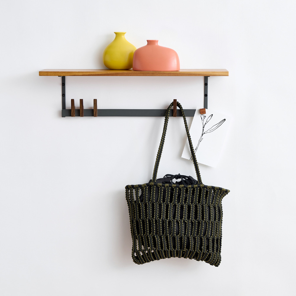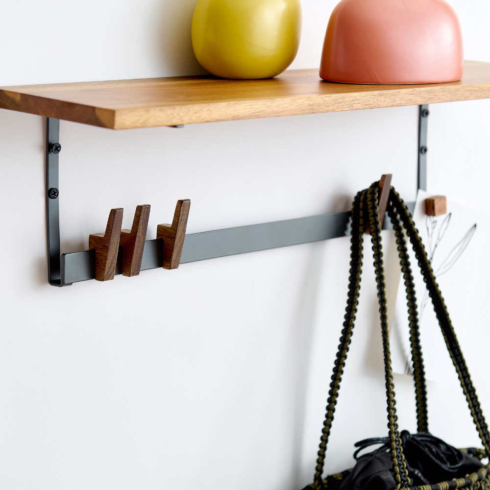木のフックが優しく調和する ベントバーシェルフ