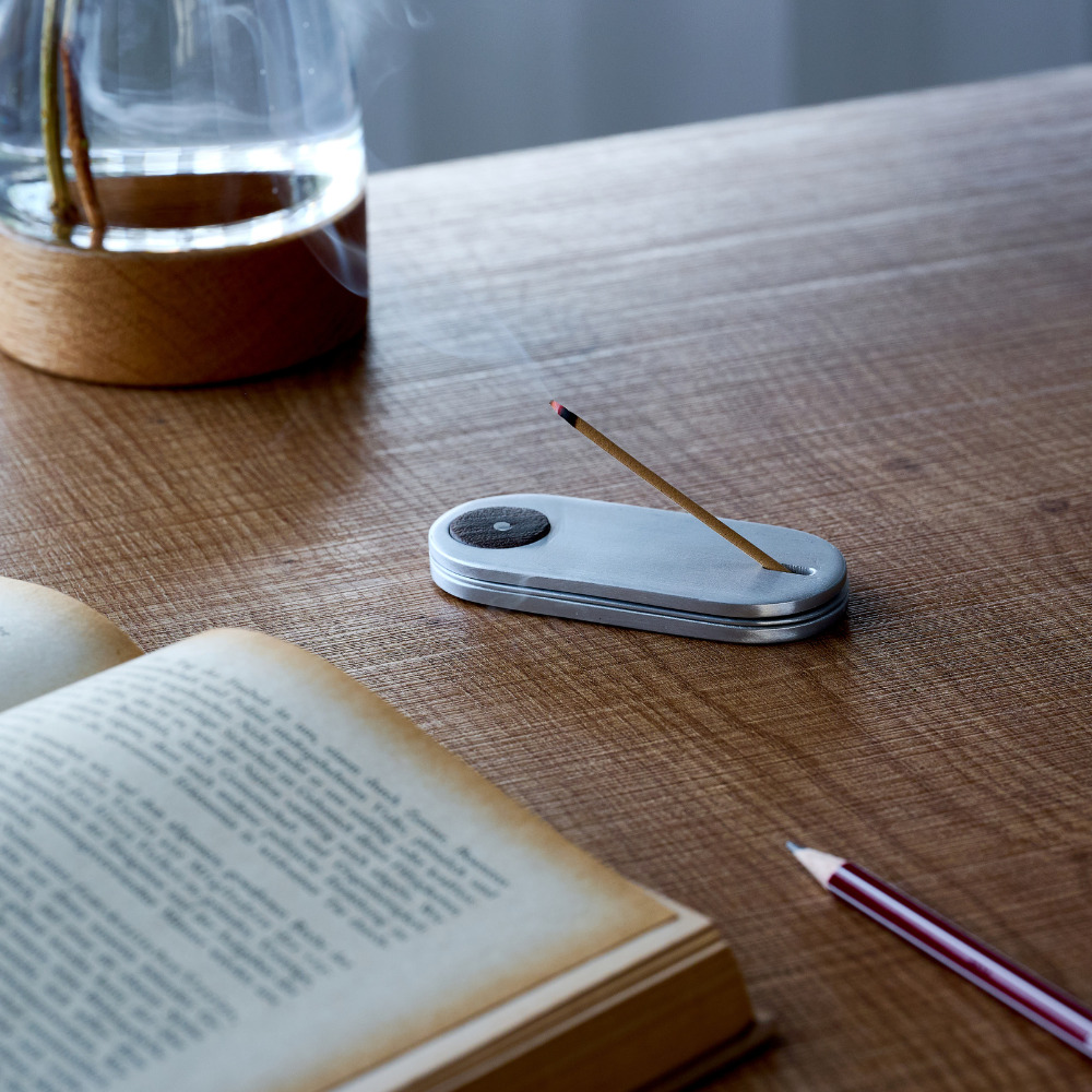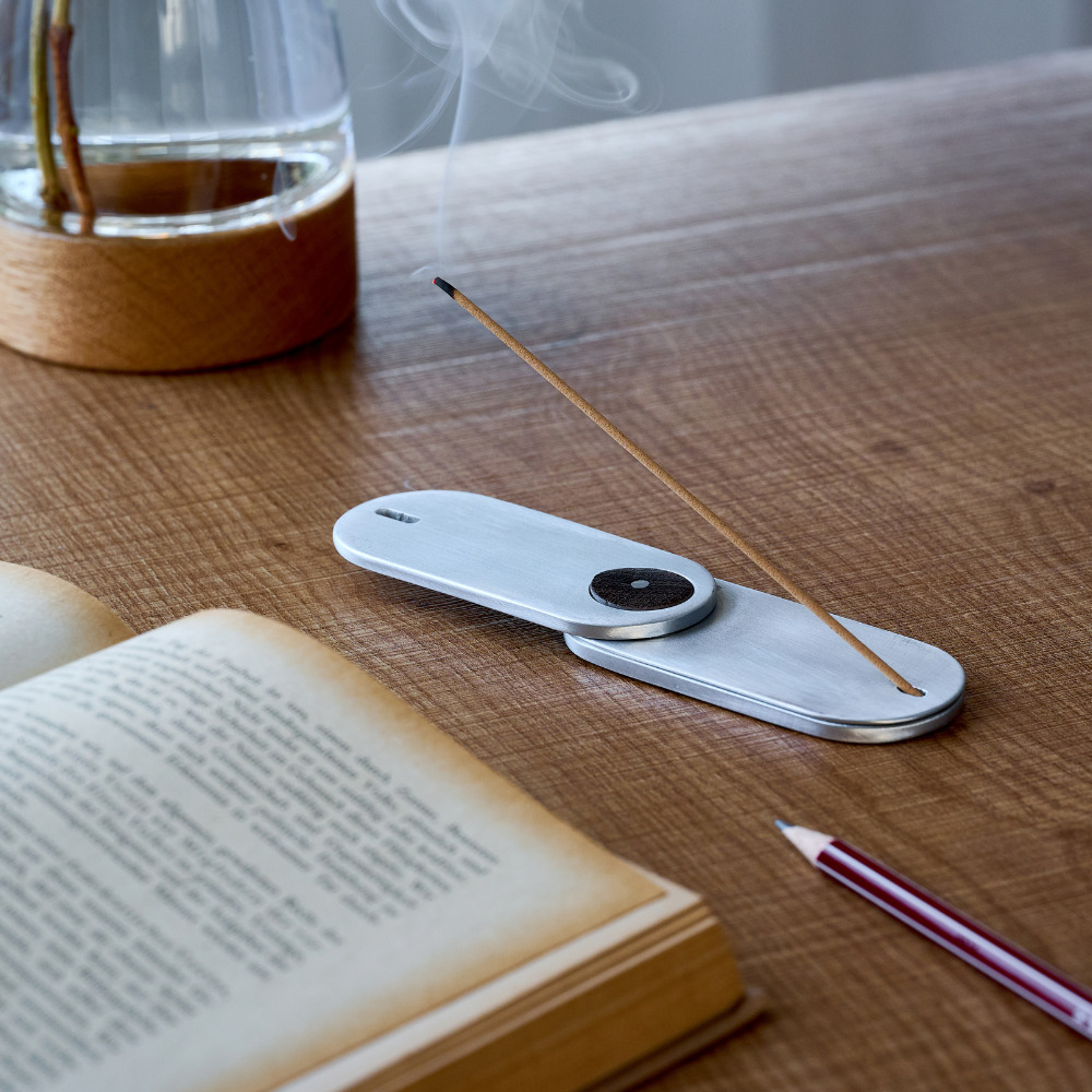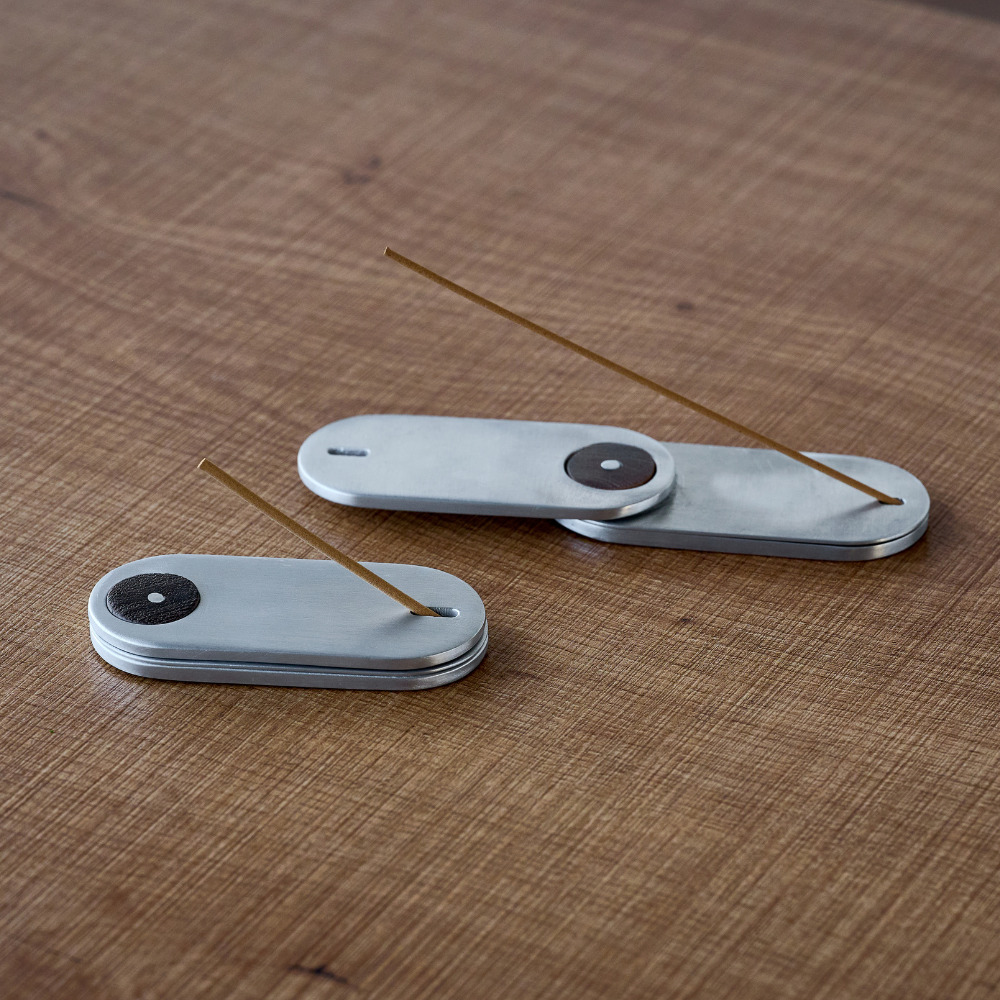 好きな場所でお気に入りのお香を楽しめる、専用のコットンケース付きお香立て。短いお香はそのまま、長いお香は一段目をスライドさせて形を変えてお楽しみいただけます。お香を支える穴は、3枚を重ねた時にしっかりお香が掛かるよう、職人が一つひとつ手作業で開けたもの。その繊細な仕上げが、この商品のこだわりを引き立てています。 ■お香・香立てはこちら ■アルミのアイテムはこちら アルミニウム(アルミ)は、軽くて丈夫で熱や電気を伝えやすい、製品の加工がしやすく、使い終わった後のリサイクルも容易で優れた特徴を多く持つ金属です。その丈夫な素材から自動車やパソコンなどの部品、航空機の機体などにも使われています。 >>インテリア雑貨