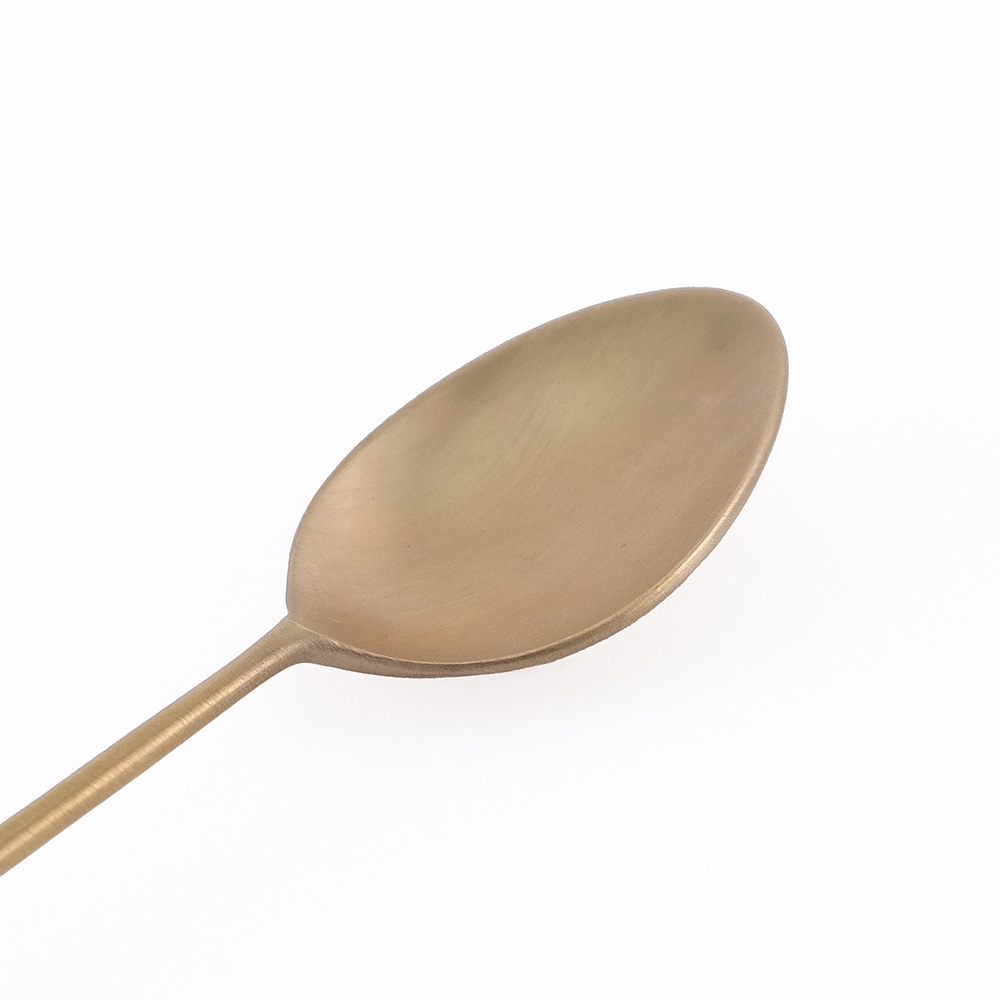 ランチやディナータイムを上品に演出する美しいブラスのカトラリー。華奢で繊細な持ち手のデザインが特徴で、見た目にも洗練された印象を与えます。職人の手仕事によってひとつひとつ丁寧に仕上げられており、独創的で味わいのあるデザインが魅力です。ブラス素材は丈夫で扱いやすく、日常のカトラリーと同じように気軽に洗ってお使いいただけます。使い込むほどに味わいが増し、愛着を感じながら長くお使いいただける、特別感のある日常のカトラリーです。 ■カトラリー関連はこちら BRASS(ブラス)とは真鍮のことで、shesayのBRASS製品はすべて職人によるハンドメイドで生産しています。独自の質感や深みのある光沢が上品な雰囲気を醸し出し、使うほどに増していく風合いも真鍮素材ならではの特徴です。年月の経過とともに、自分だけのエイジングを感じられる愛着のあるものへとなっていきます。 >>食器・キッチン